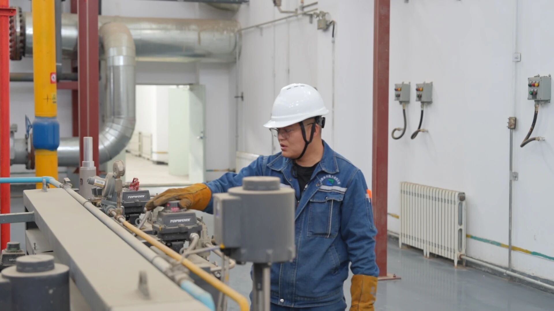 工作人员在设备间巡检。