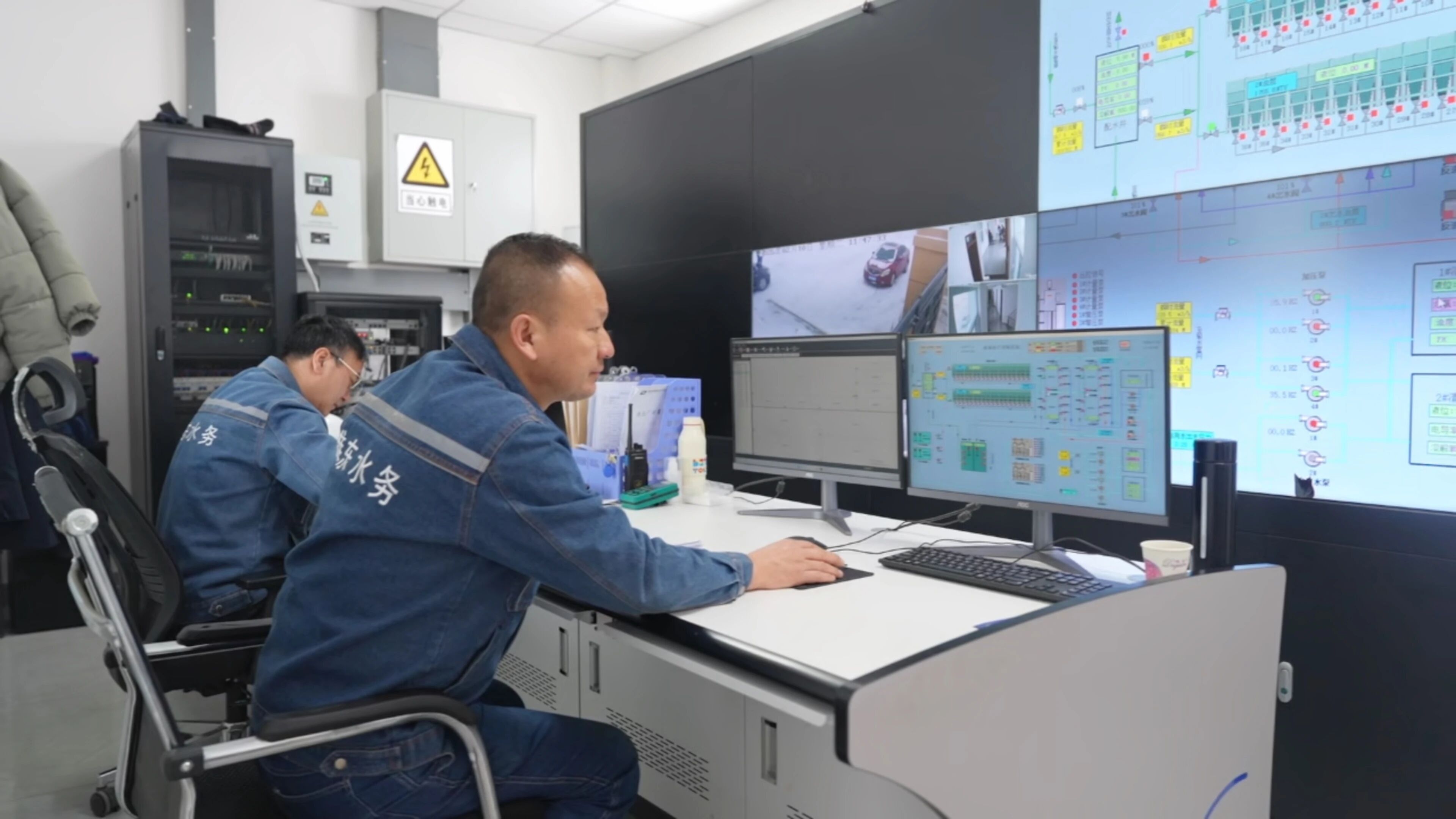 值班人员监测供水情况。