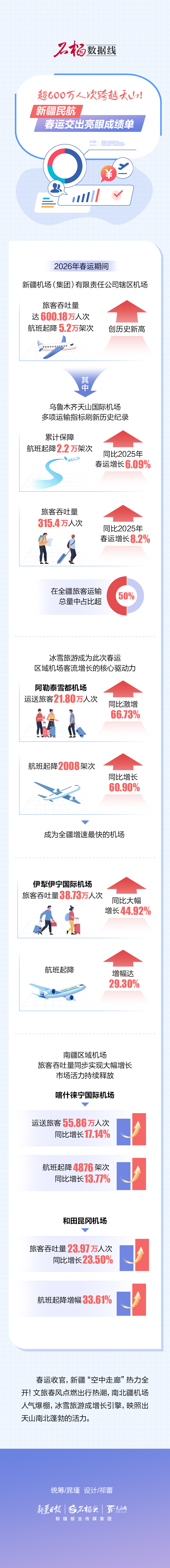 春运收官,新疆“空中走廊”热力全开!文旅春风点燃出行热潮,南北疆机场人气爆棚,冰雪旅游成增长引擎,映照出天山南北蓬勃的活力。