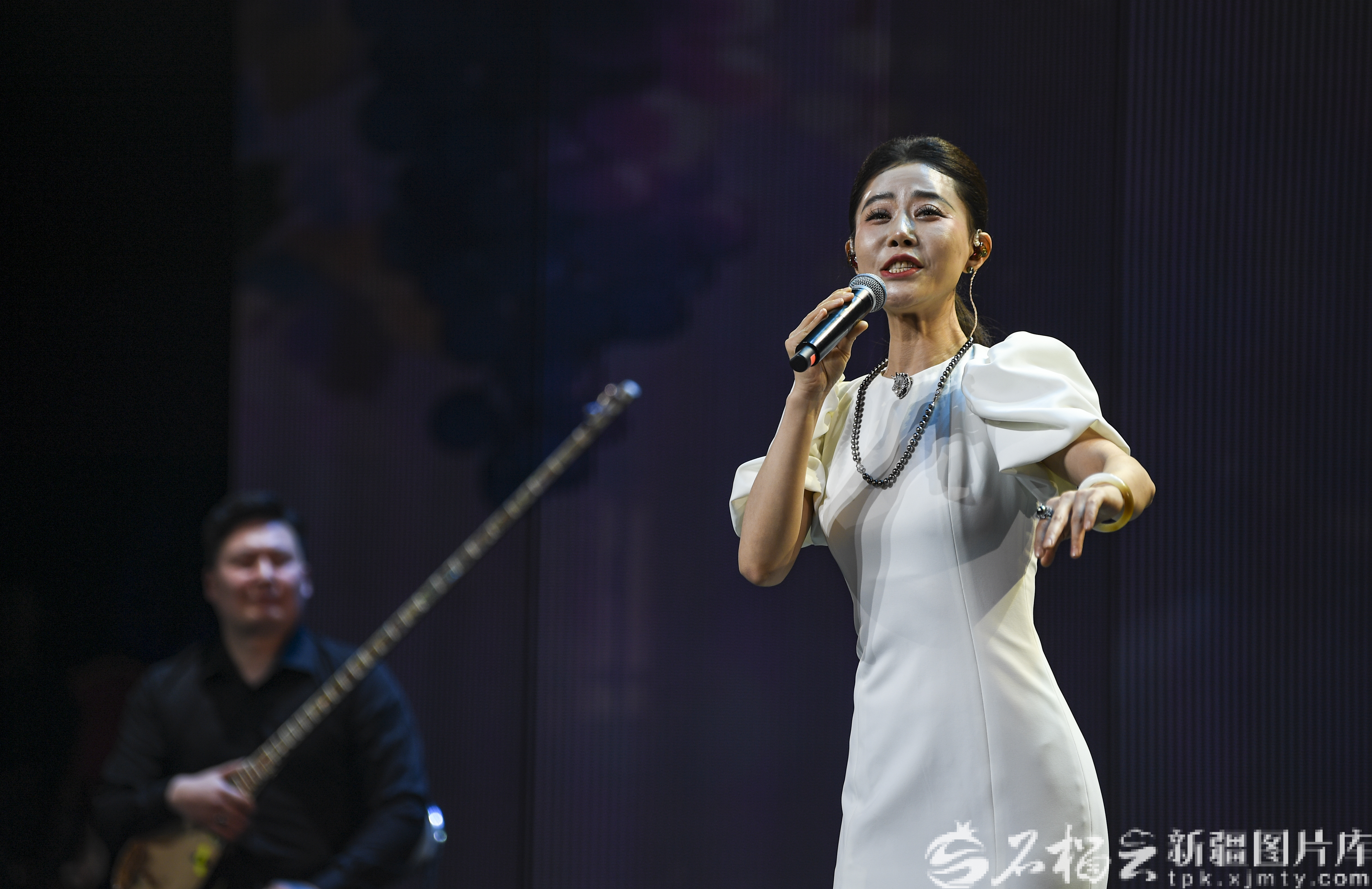 4月10日,歌手尕尕在演唱《新疆姑娘》。
