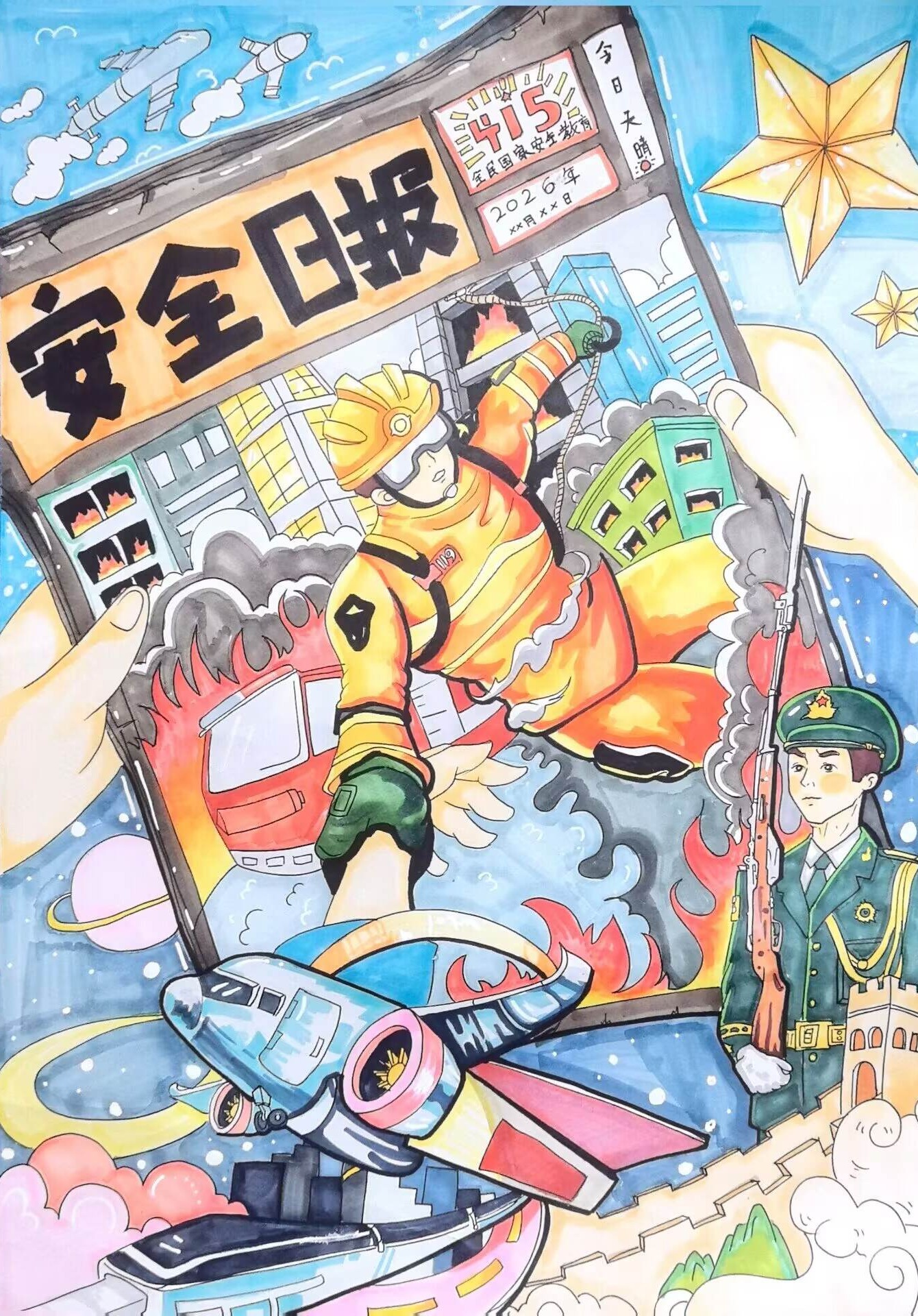 在这一幅幅色彩斑斓的画作中,孩子们以独特的视角观察着身边的“大安全”——从国土安全到生态安全,从网络安全到文化安全,画纸上的每一笔都饱含着对祖国深沉的热爱与守护的决心。