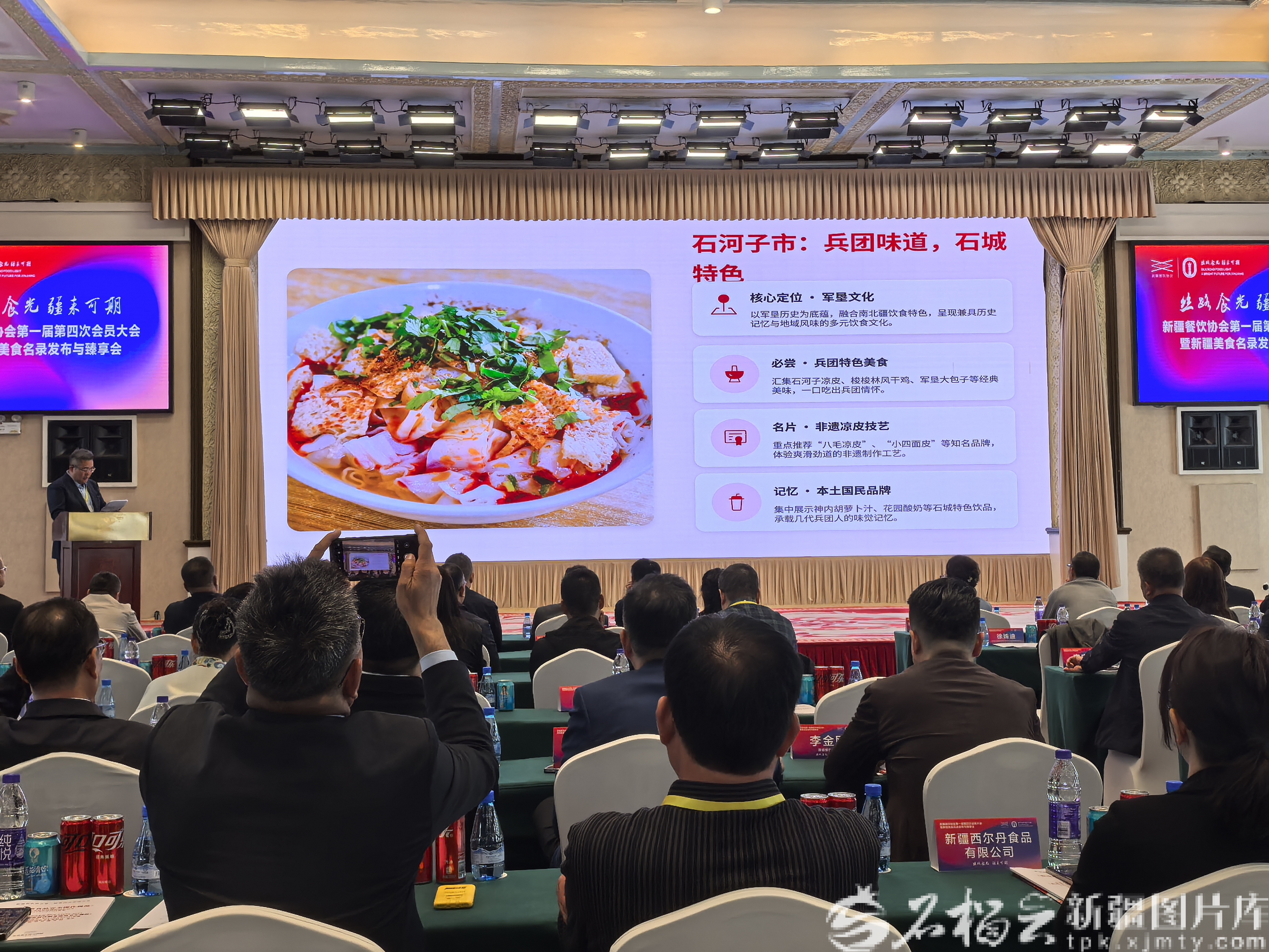 4月15日,在新疆餐饮协会第一届第四次会员大会暨新疆美食名录发布与臻享会上,相关负责人在介绍“2026兵地三城小吃汇”活动内容。石榴云/新疆日报记者 于江艳摄
