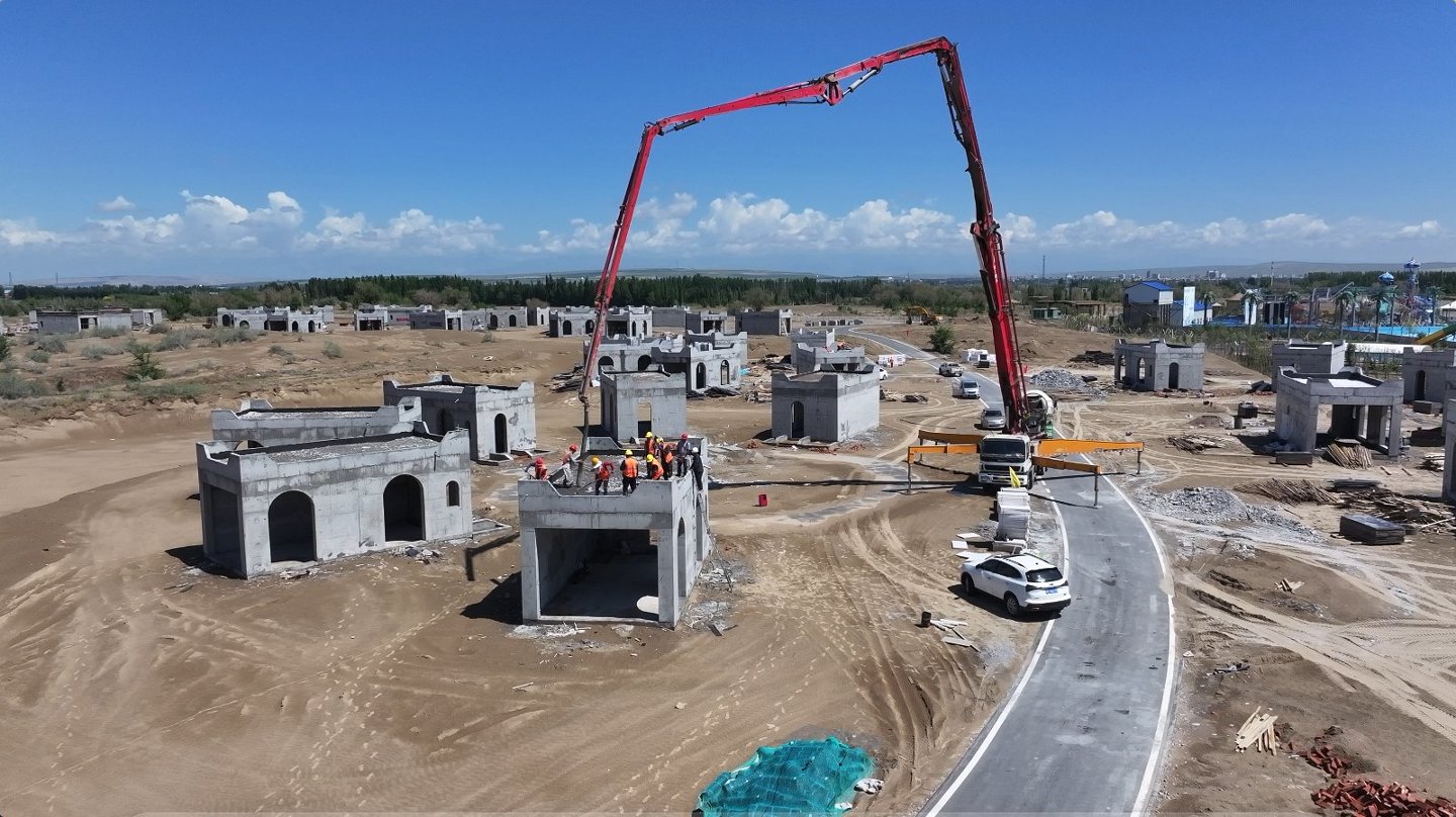 图开沙漠旅游度假区沙漠酒店建设项目加速冲刺。 霍城县图开沙漠旅游度假区供图