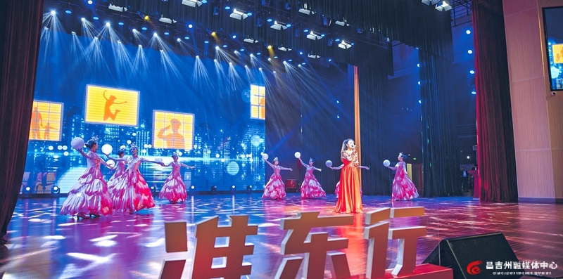 “文润庭州·准东行”昌吉州优质文化“七进”示范活动在准东经济技术开发区举办。图为活动现场,昌吉州艺术剧院演员在演唱《昌吉灯火》(4月28日摄)。记者巨海成 摄