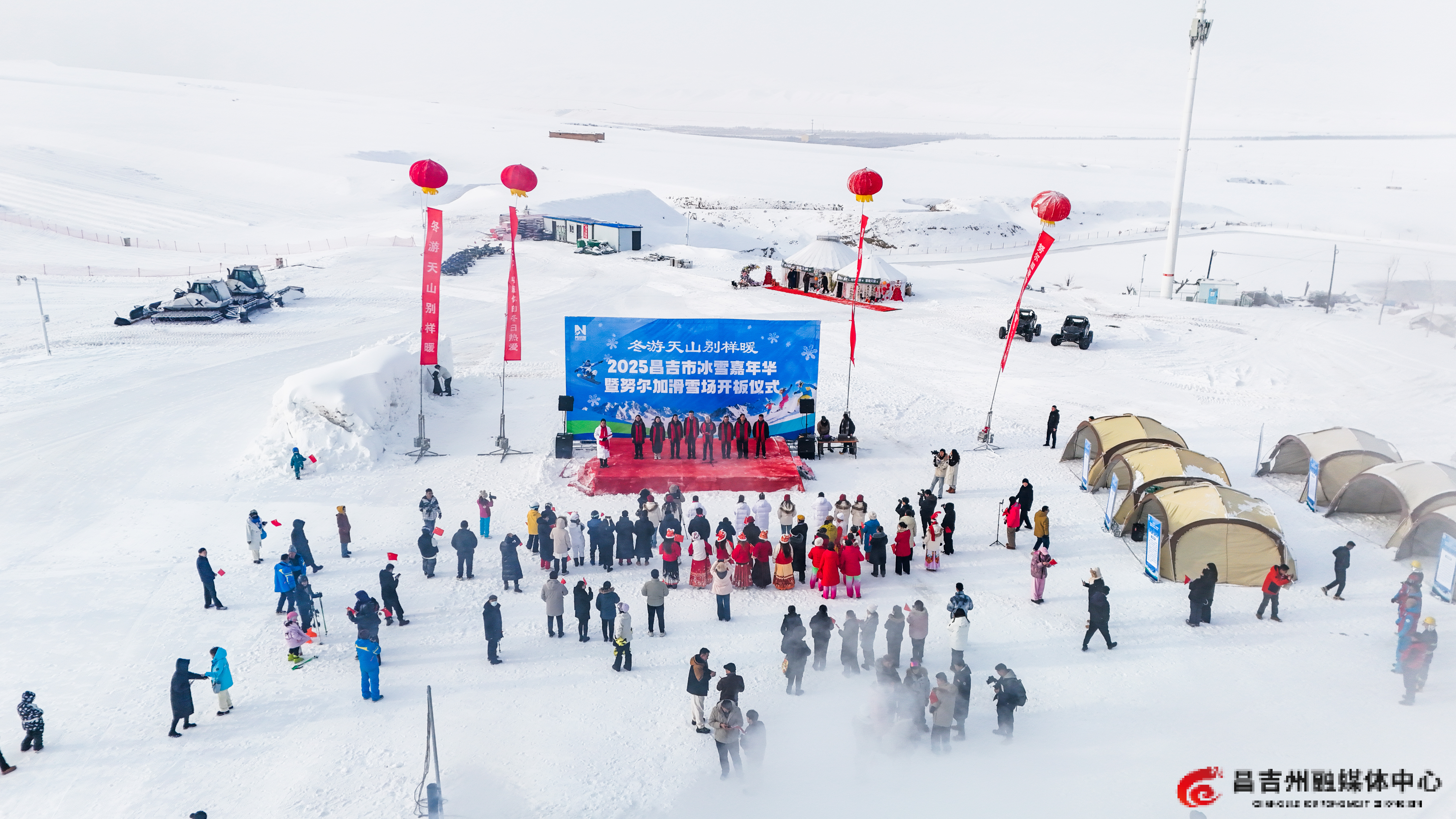 “冬游天山别样暖”2025昌吉市冰雪嘉年华暨努尔加滑雪场开板仪式现场。
