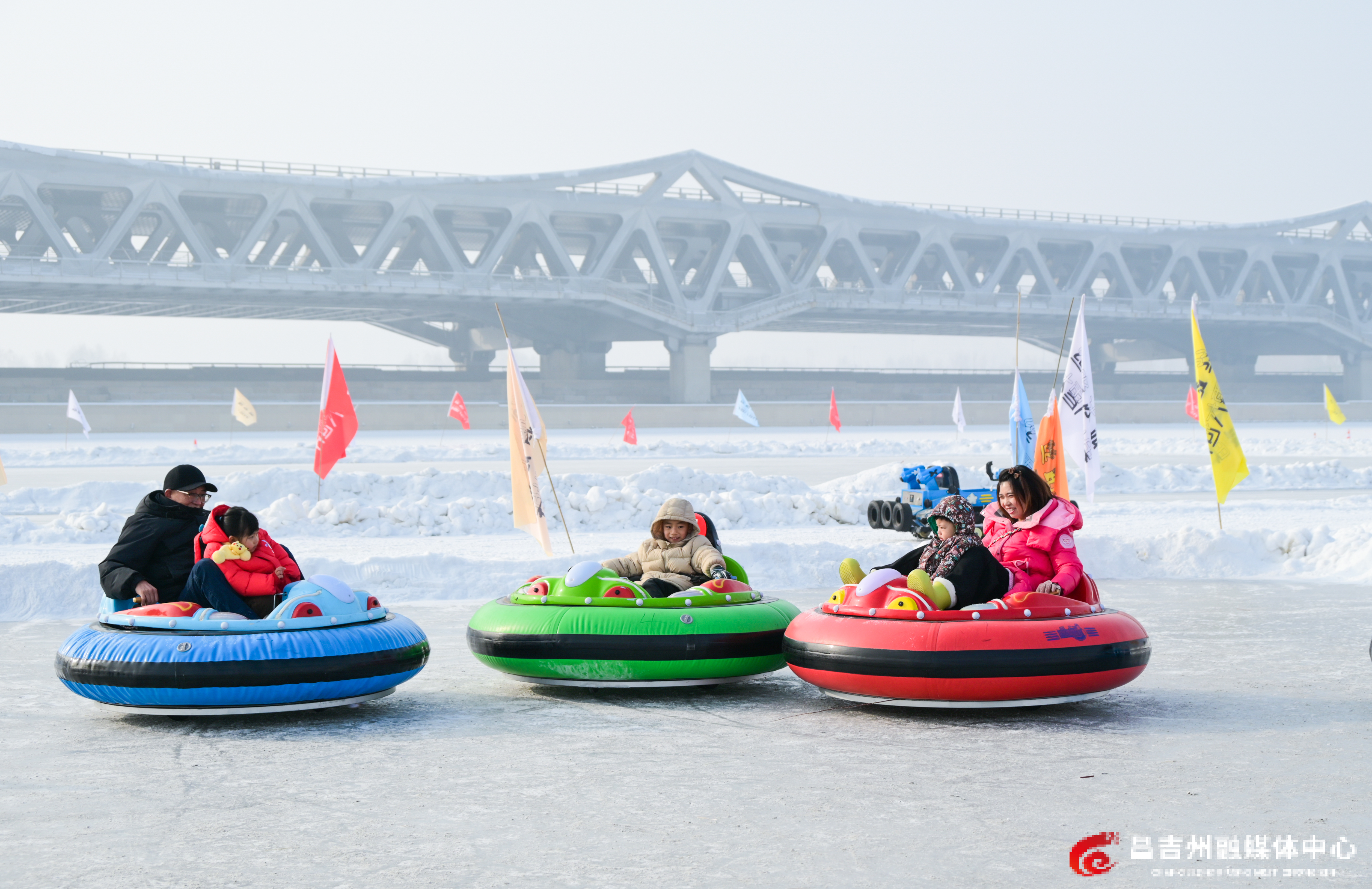 1月11日,昌吉市庭州生态绿谷“丝路冰城”冰雪大世界,游客在体验雪地碰碰车。