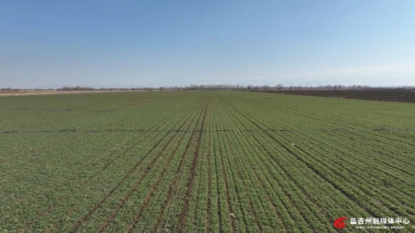 4月春意盎然,奇台县西北湾镇柳树河子村的麦田绿意铺展,冬小麦沐风生长,孕育着丰收希望。