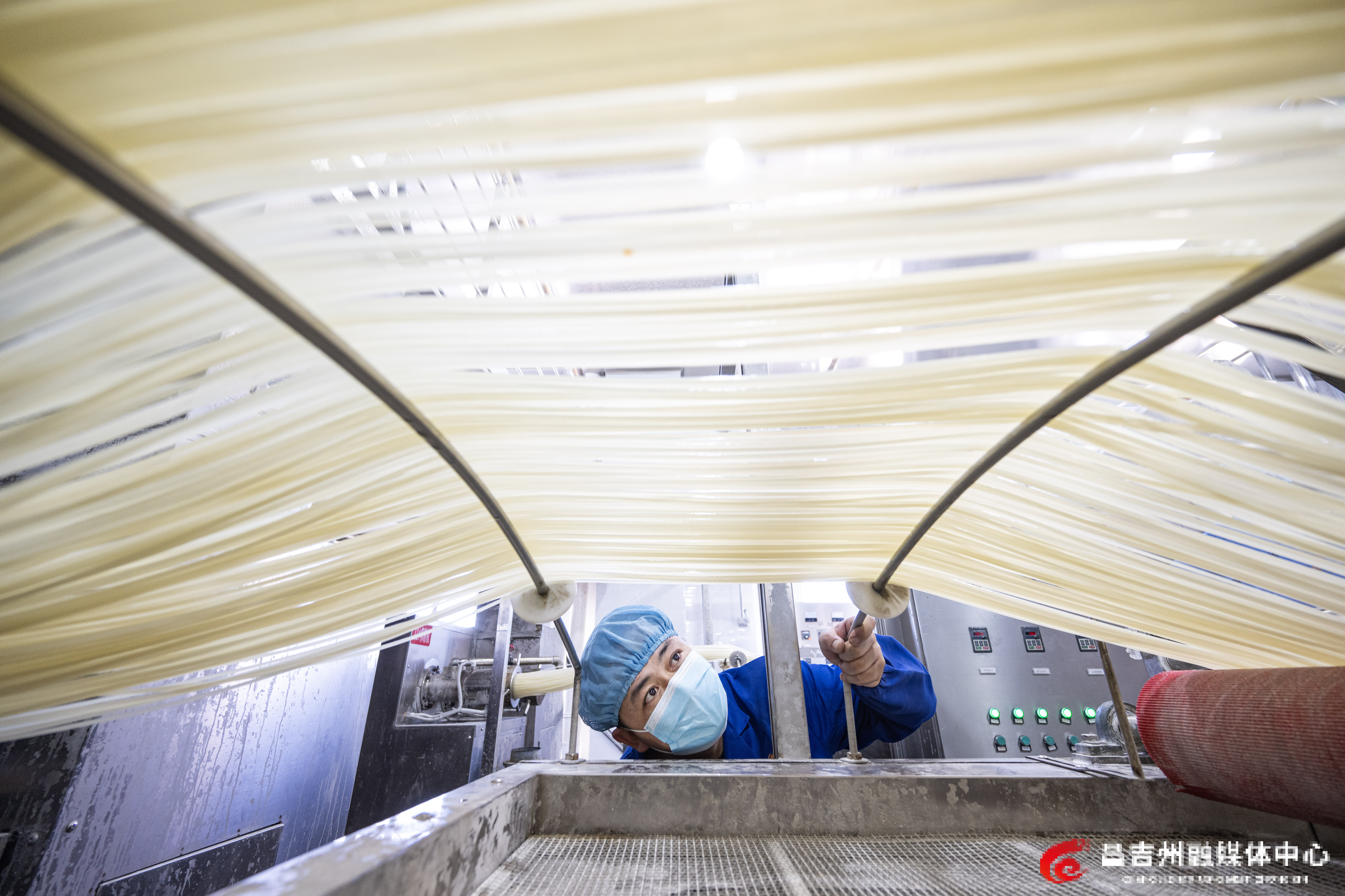 4月15日,昌吉市大西渠镇闽昌食品产业园新疆米品汇食品有限公司,员工正在车间生产米粉。