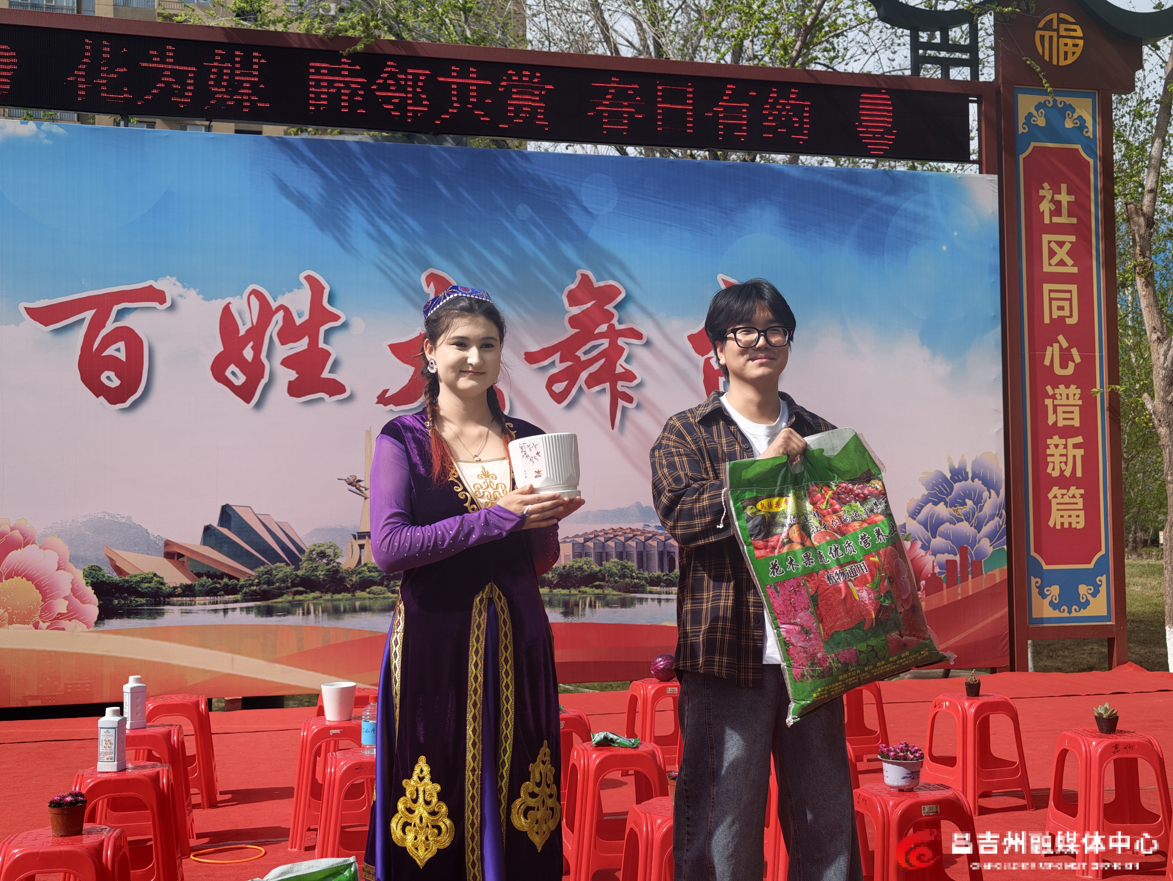 A+ A. A-丝路昌吉/昌吉州融媒体中心讯(记者 朱丽君 通讯员 王紫葳报道)鼓点咚咚响,笑声阵阵传。4月15日下午,昌吉市建国路街道嘉顺社区变成了一片欢乐的“花海”——一场名为“花为媒 春日有约 共赴美好”的邻里主题活动热热闹闹地上演了。居民们看节目、玩游戏、赏鲜花,与春天“抱”了个满怀。