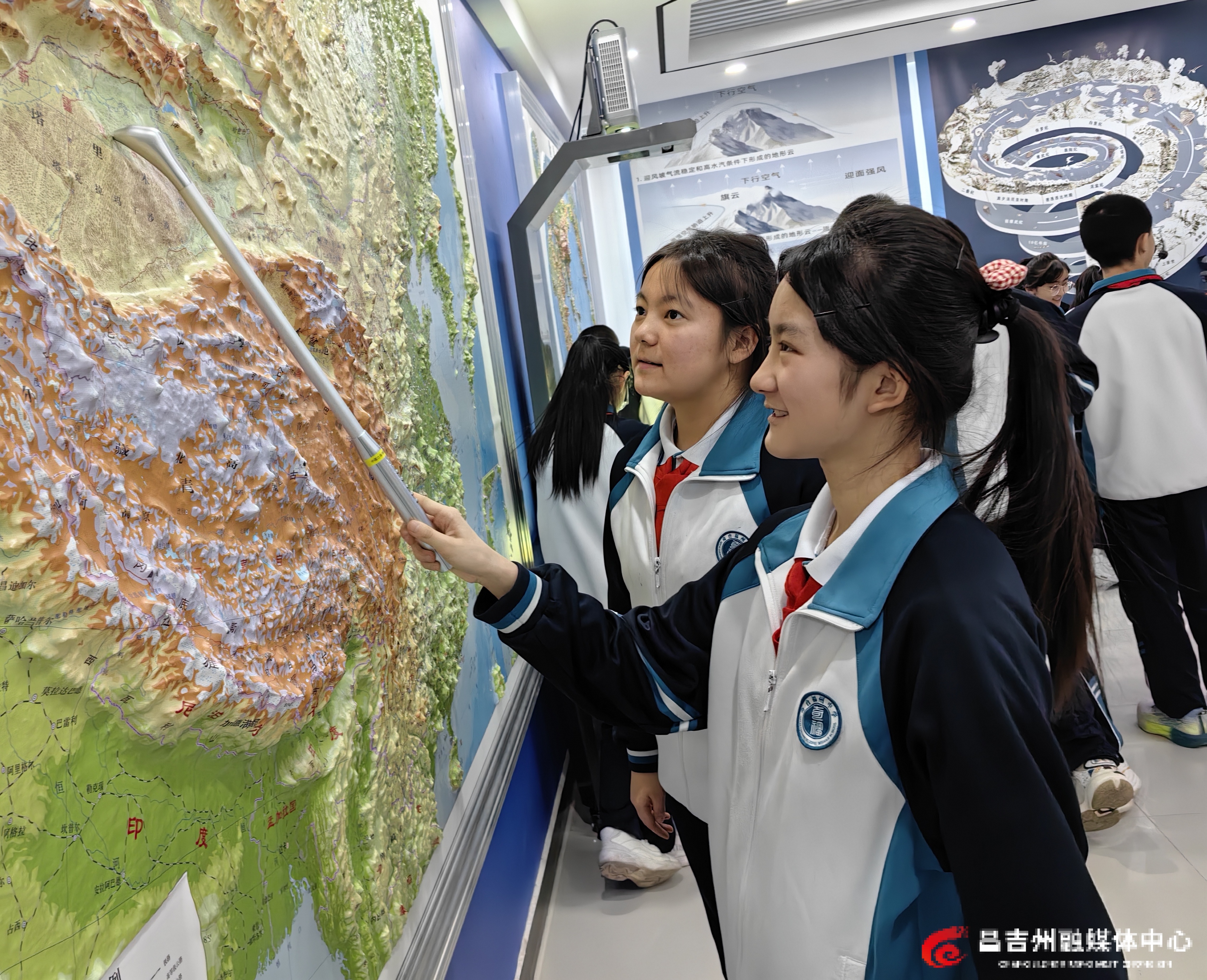 1月16日,在奇台县奇台福州中学地理课上,学生正在用智慧点读笔学习地理常识。