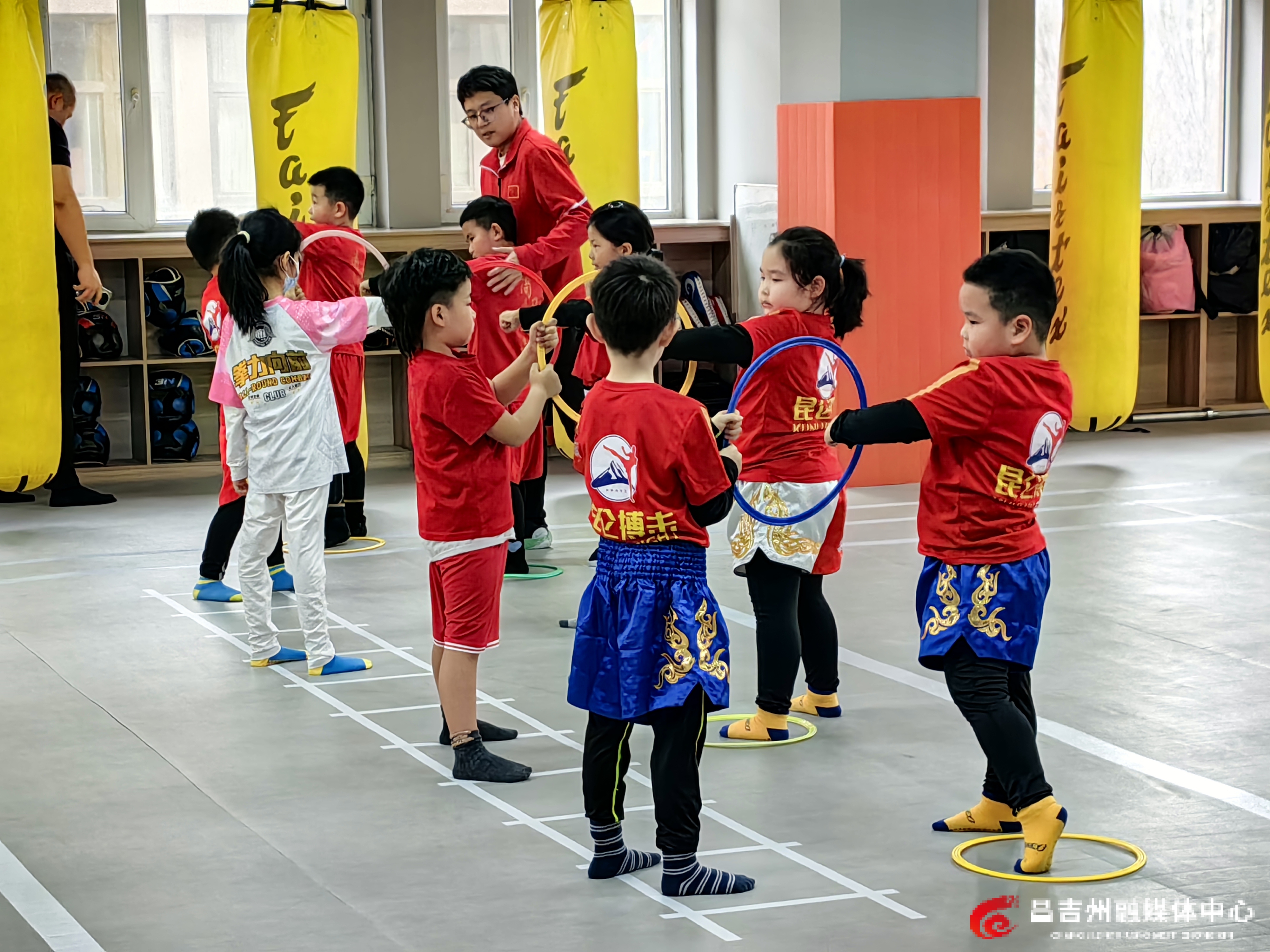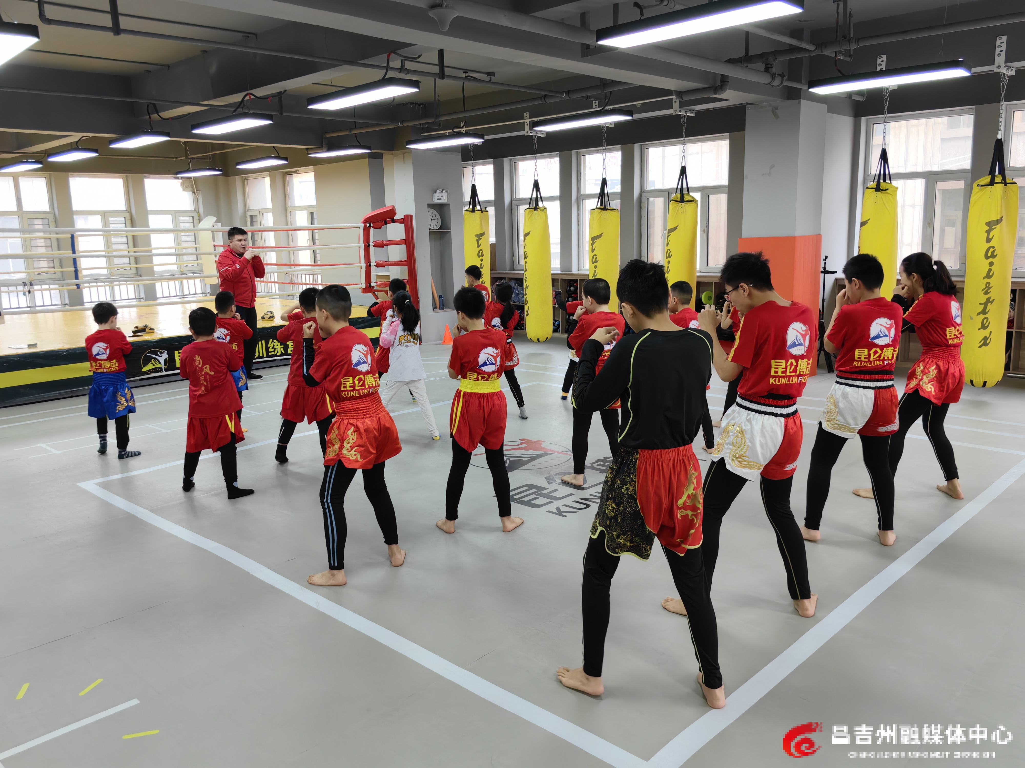 2月4日,昌吉市昆仑搏击少儿自由搏击培训机构,学员们正在学习自由搏击技巧。记者荷苒·马汗 摄