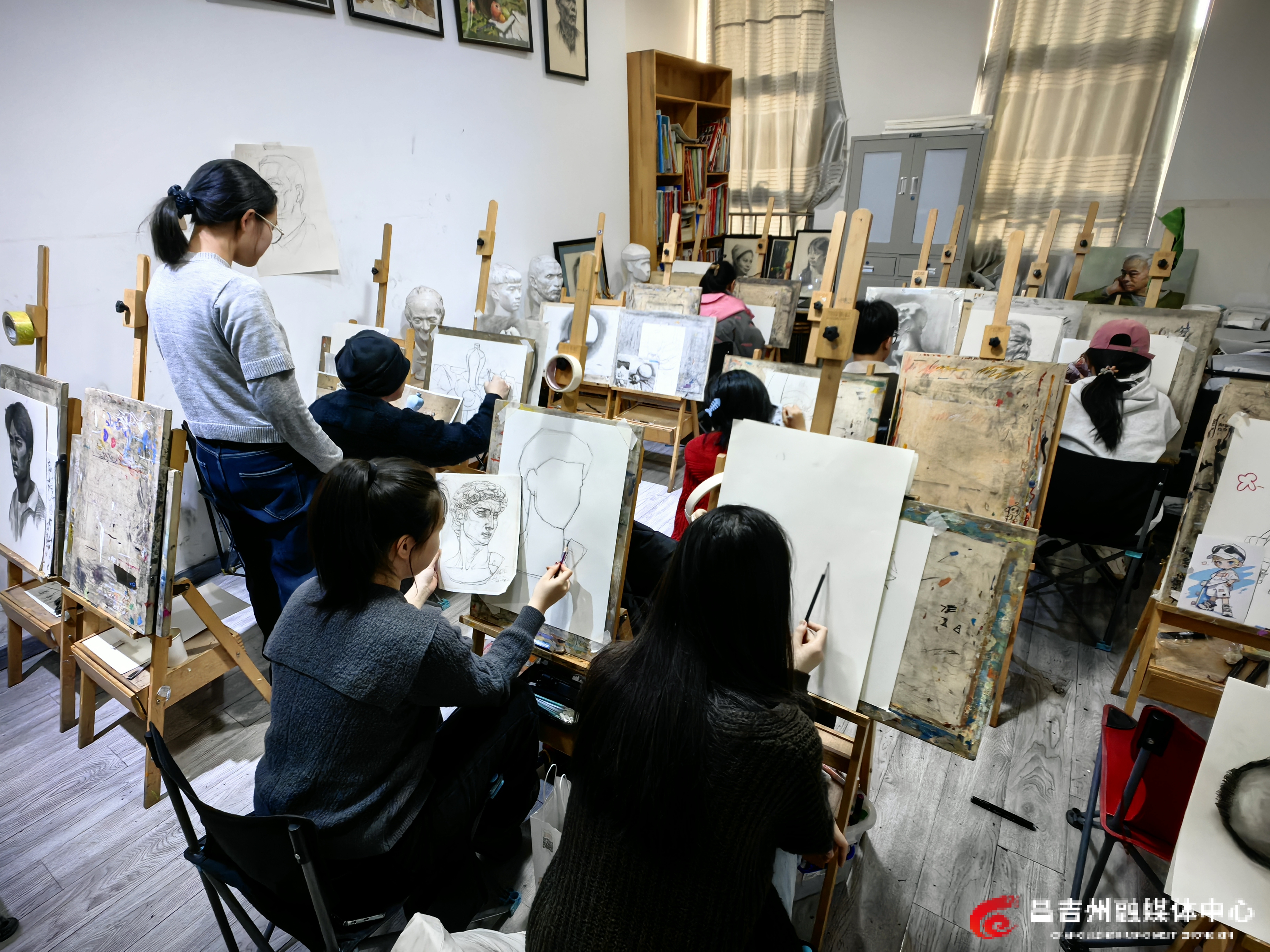 2月5日,新疆金石艺术培训中心内,学员正在学习素描。记者荷苒·马汗 摄