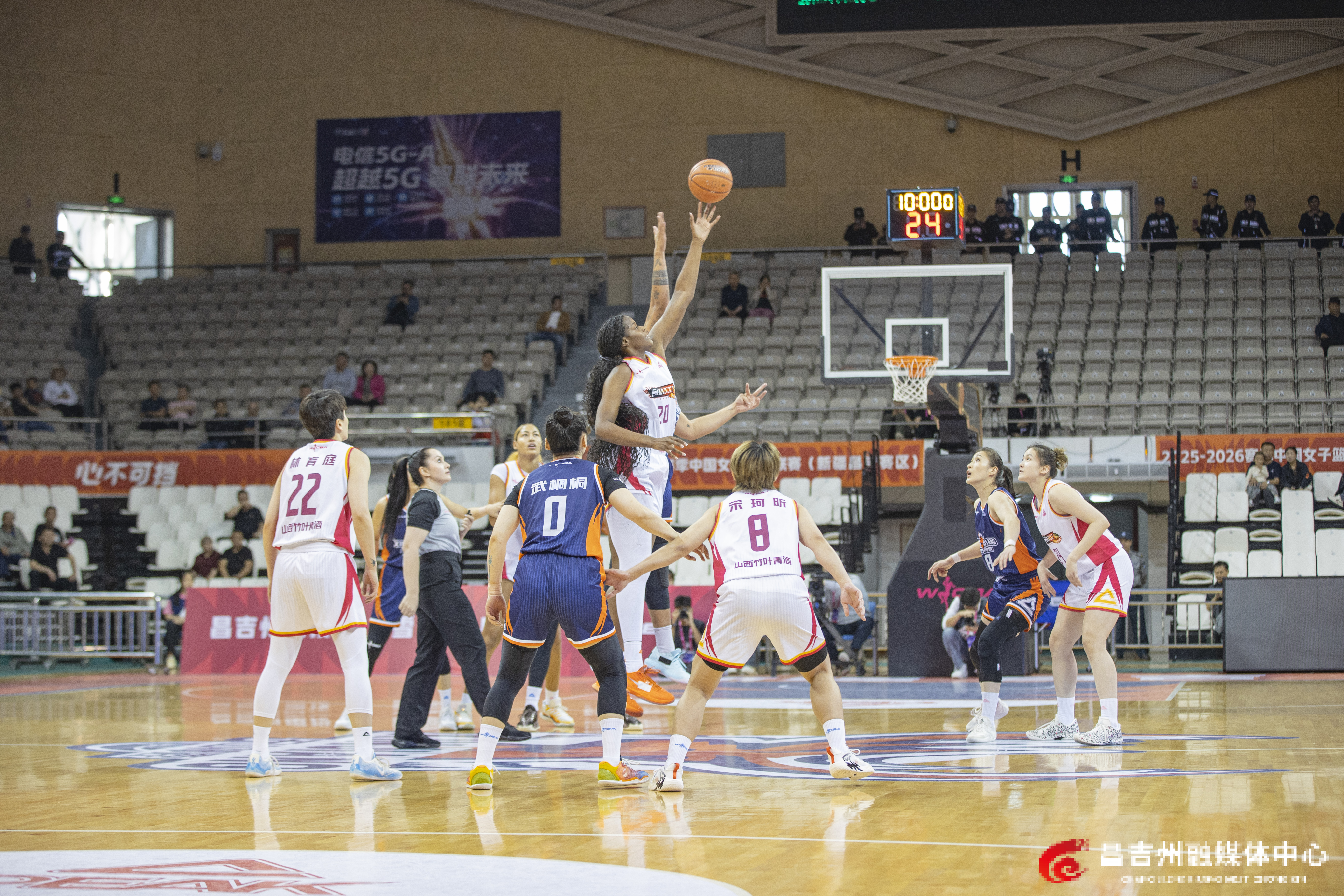 4月8日,昌吉体育馆,双方球员中圈跳球。