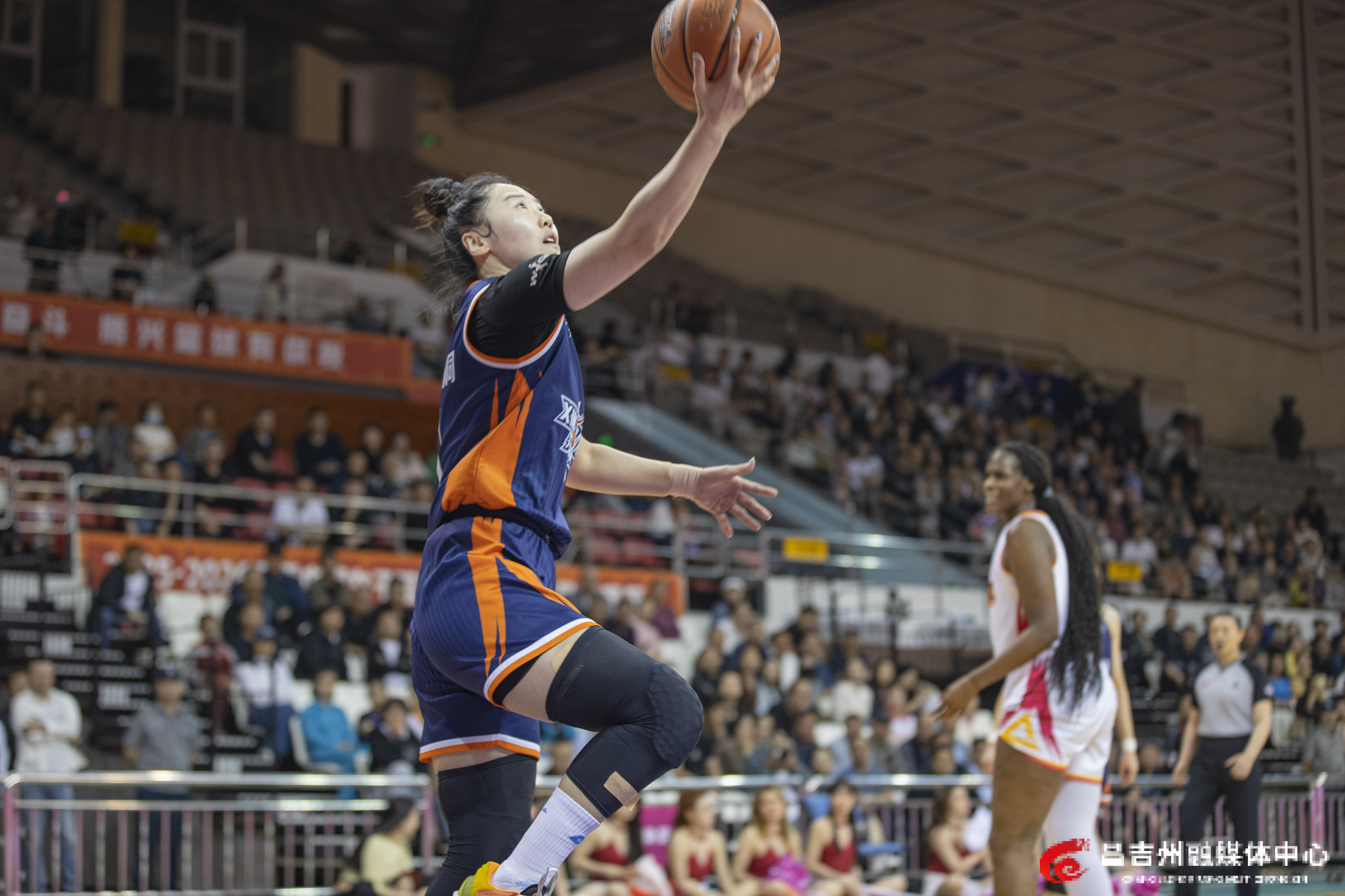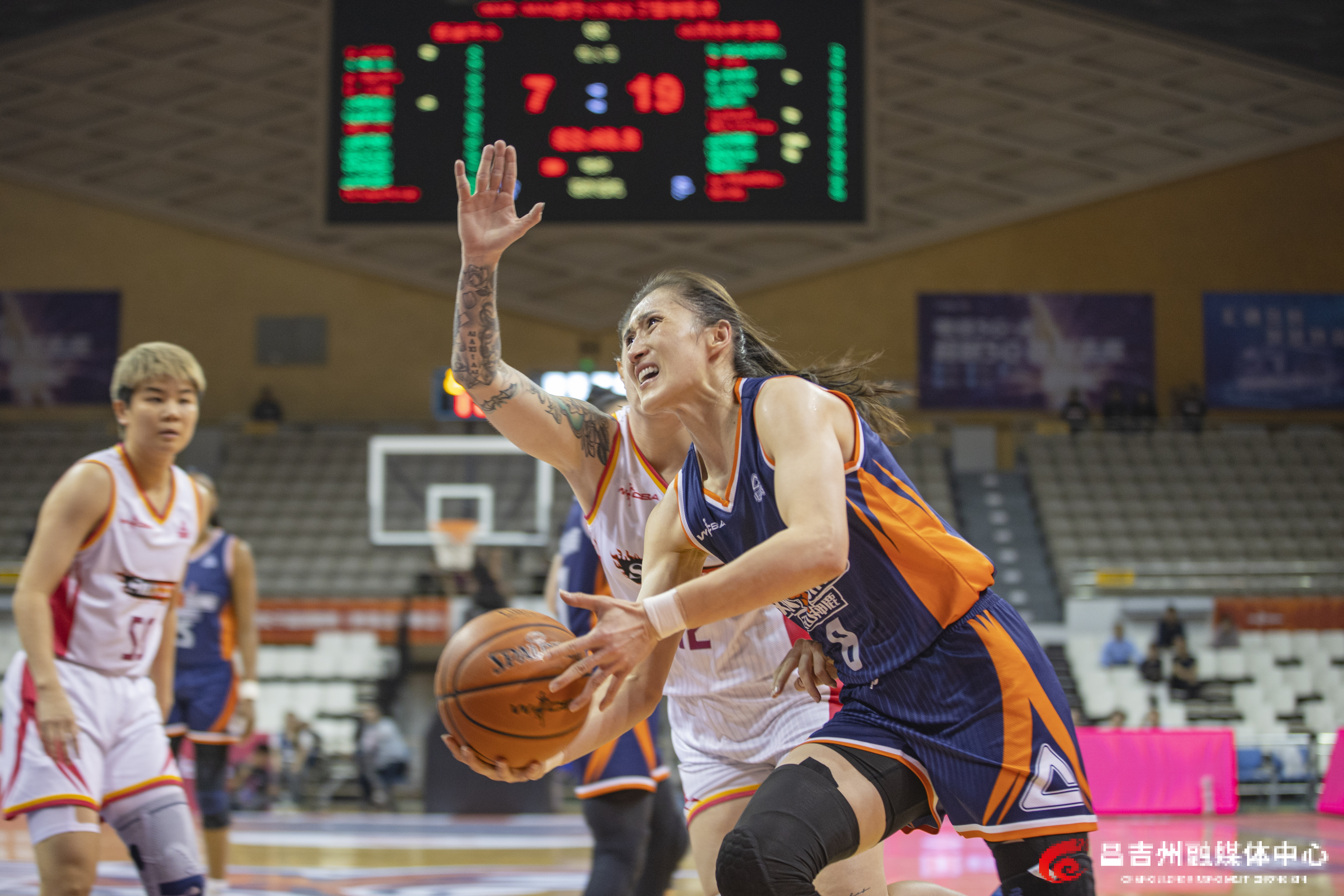 4月8日,昌吉体育馆,新疆天山女篮球员篮下进攻。