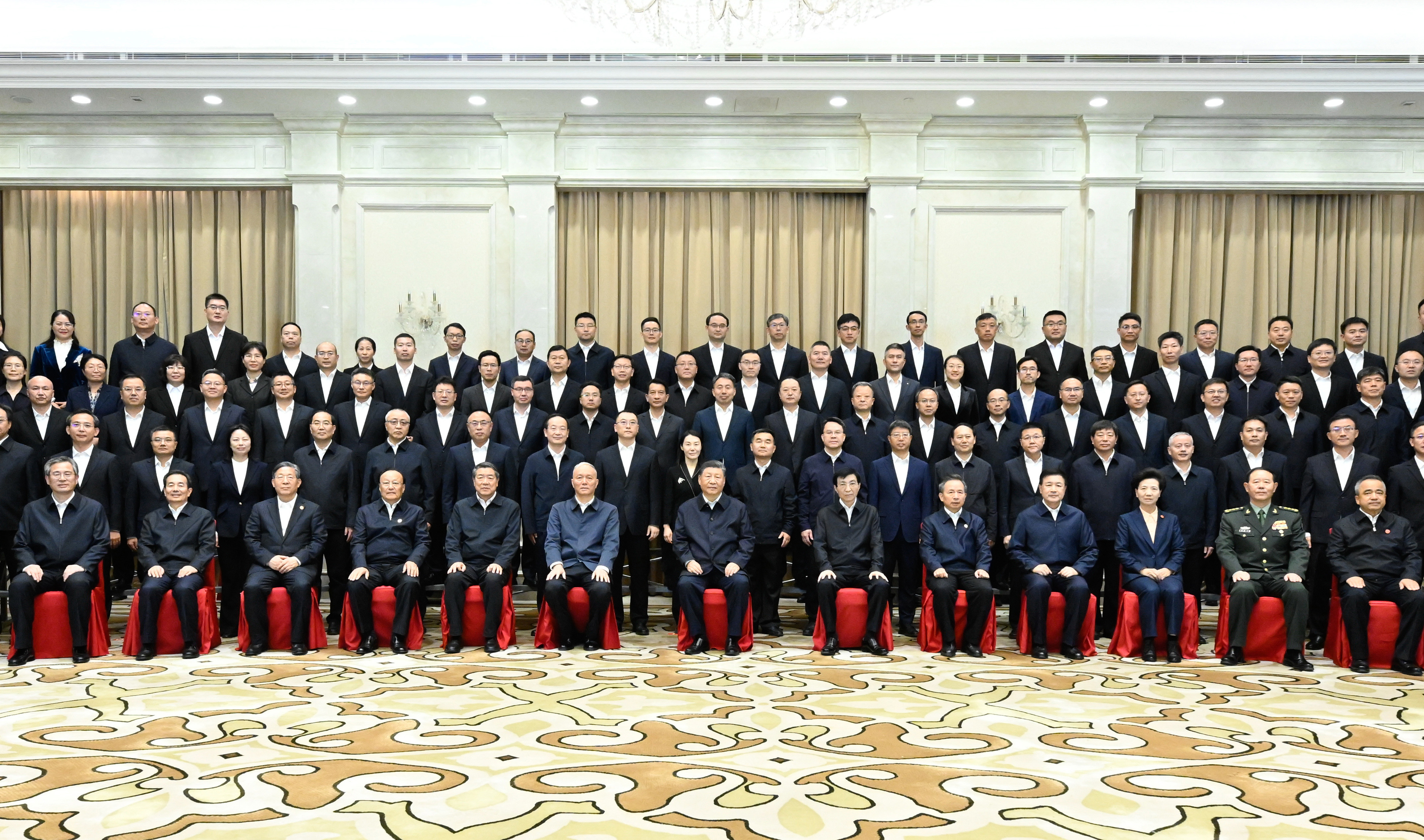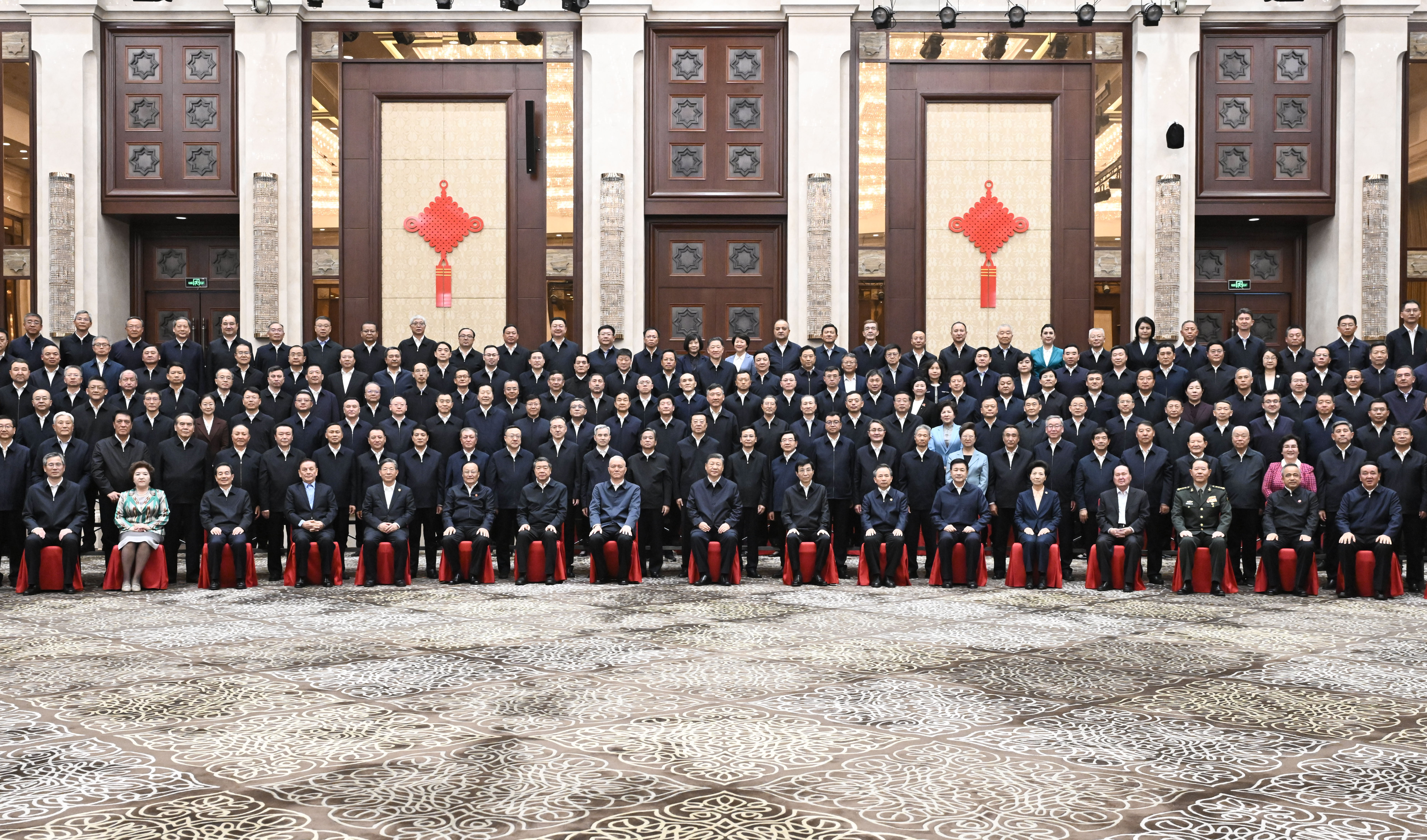 这是习近平亲切接见新疆维吾尔自治区及有关部门、各地州市负责同志和老同志代表,并同大家合影留念。