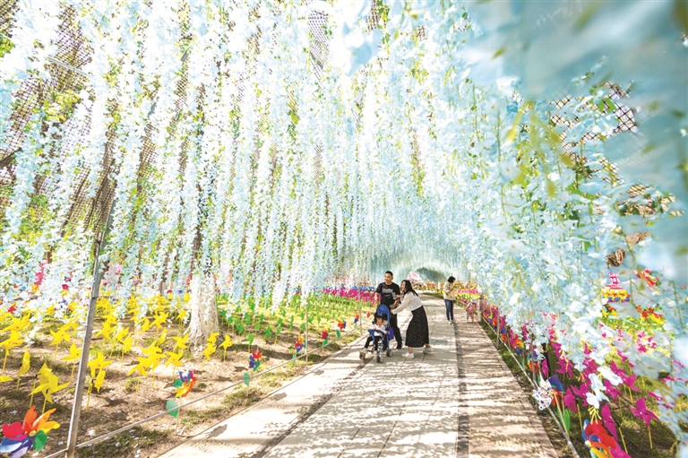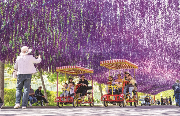 5月1日,游客在昌吉国家农业高新技术产业示范区新疆农业博览园游玩。该农业博览园集农业科技展示、果蔬采摘、休闲观光、花卉繁育为一体,日接待游客近万人。记者 何 龙摄