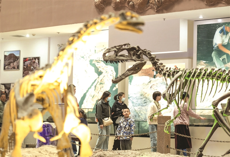 5月2日,游客在昌吉恐龙馆参观。“五一”假期,昌吉恐龙馆免费对外开放,不少家长带着孩子探索恐龙的奥秘。记者 何 龙摄