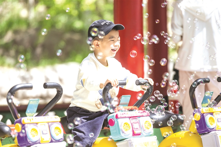 5月1日,市民在昌吉市人民公园拍照、游玩,放松身心,享受假日惬意美好时光。记者 何 龙摄