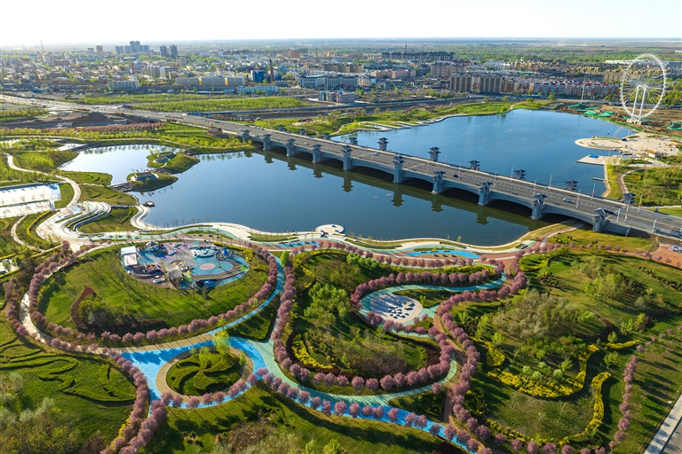 5月3日,吉木萨尔县庭州湾景观带在夕阳的映衬下宛如画卷。吉木萨尔县庭州湾景观带在该县东沙河基础上打造,景观带全长3.5公里,总面积约124.8公顷,集科普、观光、休闲、娱乐等多功能于一体的各类设施,吸引众多居民前来休闲健身。 近年来,吉木萨尔县加强生态文明建设,将山水、园林与文化有机融合,构筑起“山映水、水绕城、城环绿”的生态景观格局,打造城市小游园12个,进一步改善城市绿化,提升居民的生活质量。 记者 何 龙摄