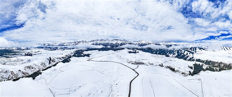 5月27日,受冷空气影响,奇台县江布拉克景区迎来一场降雪。降雪让景区披上银装,雪山、森林、灌木、峡谷交相辉映,雪岭云杉、万亩旱田如同水墨画一般色彩分明,也为前往景区游玩的游客带来了别样的体验。 □记者 何 龙摄
