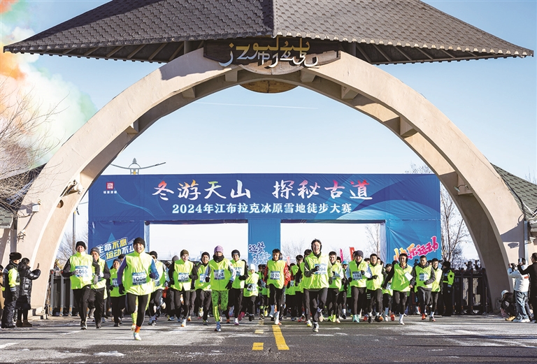 中国昌吉网讯(记者刘辉、通讯员王多兵、安涛报道)12月29日上午,奇台县江布拉克景区首次在冬季举办徒步赛事活动——“冬游天山·探秘古道”2024年江布拉克冰原雪地徒步大赛,吸引了疆内外1000多名徒步爱好者参加。