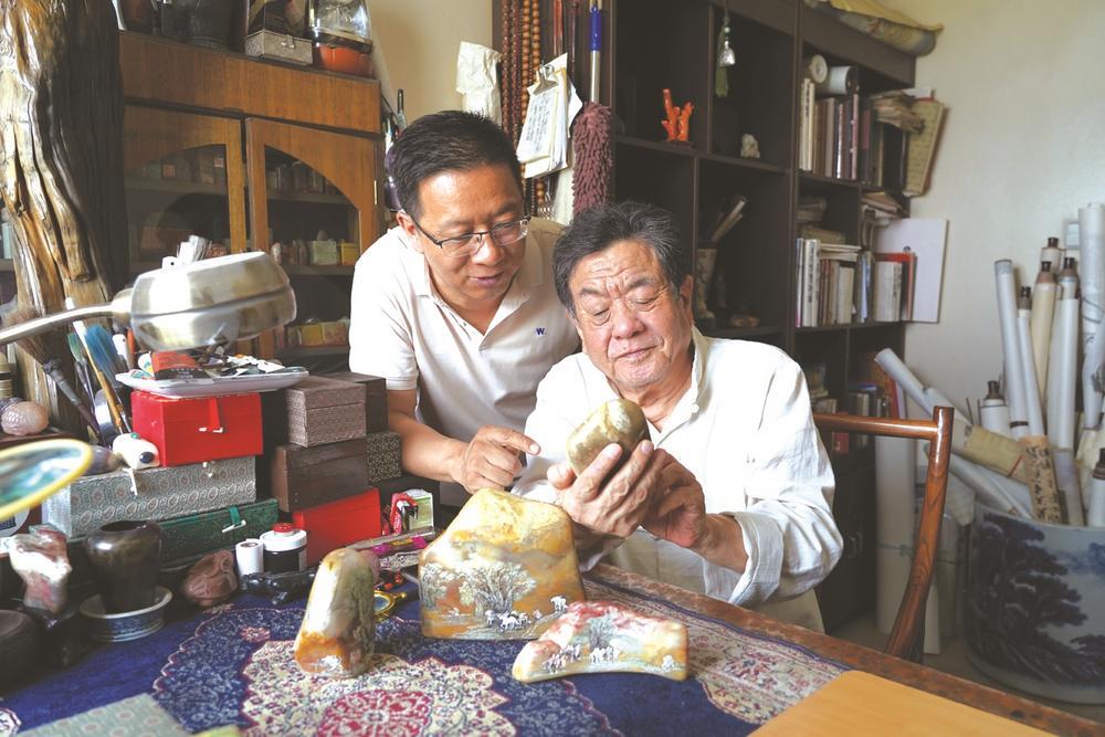 这些年,邹氏父子除了创作外,还去学校等地传授这门技艺,出版了《读石心悟邹氏父子石刻微雕作品集》。“手艺人也是守艺人。我们不仅要精进自己的技艺,还要把这项技艺传承好,让传统工艺走进人们的生活。”邹溪说。