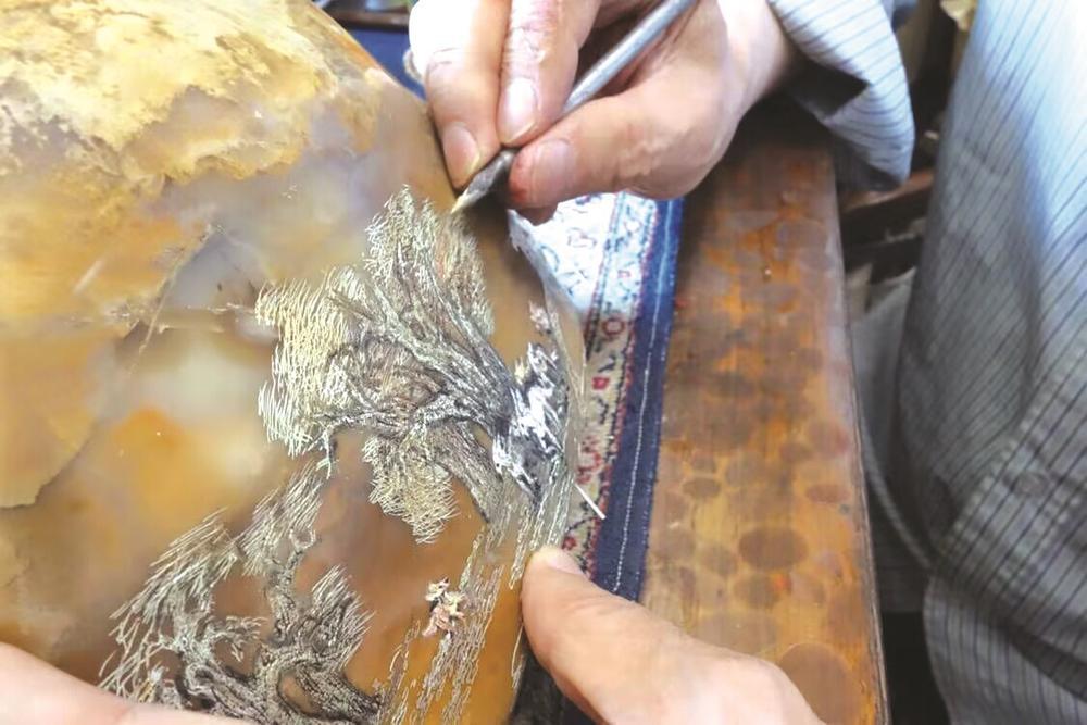 中国昌吉网(通讯员 陈新文)邹本卫坐在一方条桌前,凝神专注,左手握着一块石头,右手持一把微雕细刀,刀锋发力处稳、准、狠,尽显毫厘之间进行雕刻创作的功力。