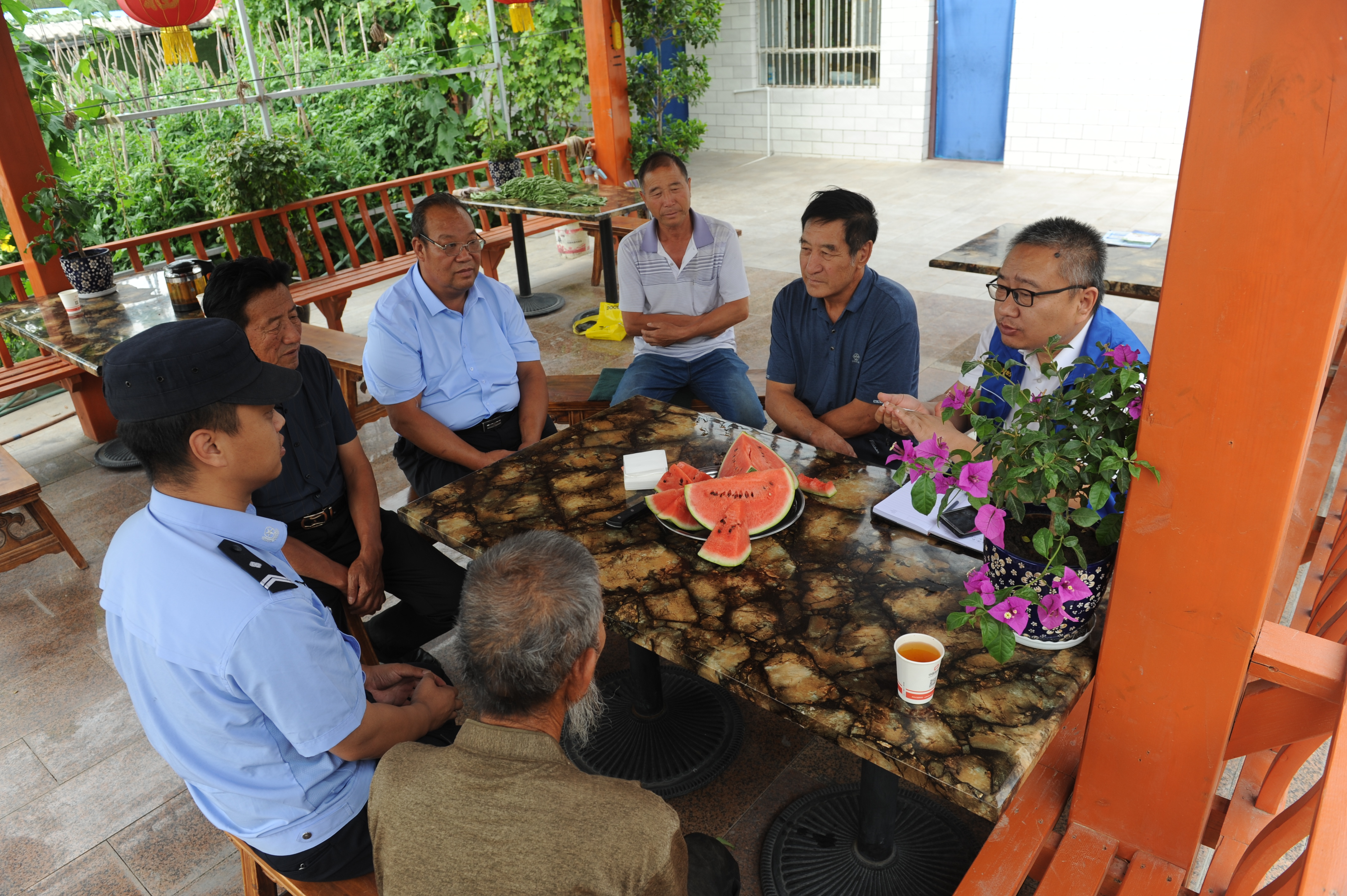 呼图壁县农业农村局驻该县园户村镇上三工村第一书记、工作队队长、网格长周辉(右一)同该村道德评审团一起,调解群众矛盾。天山网-新疆法治报记者 李进福摄