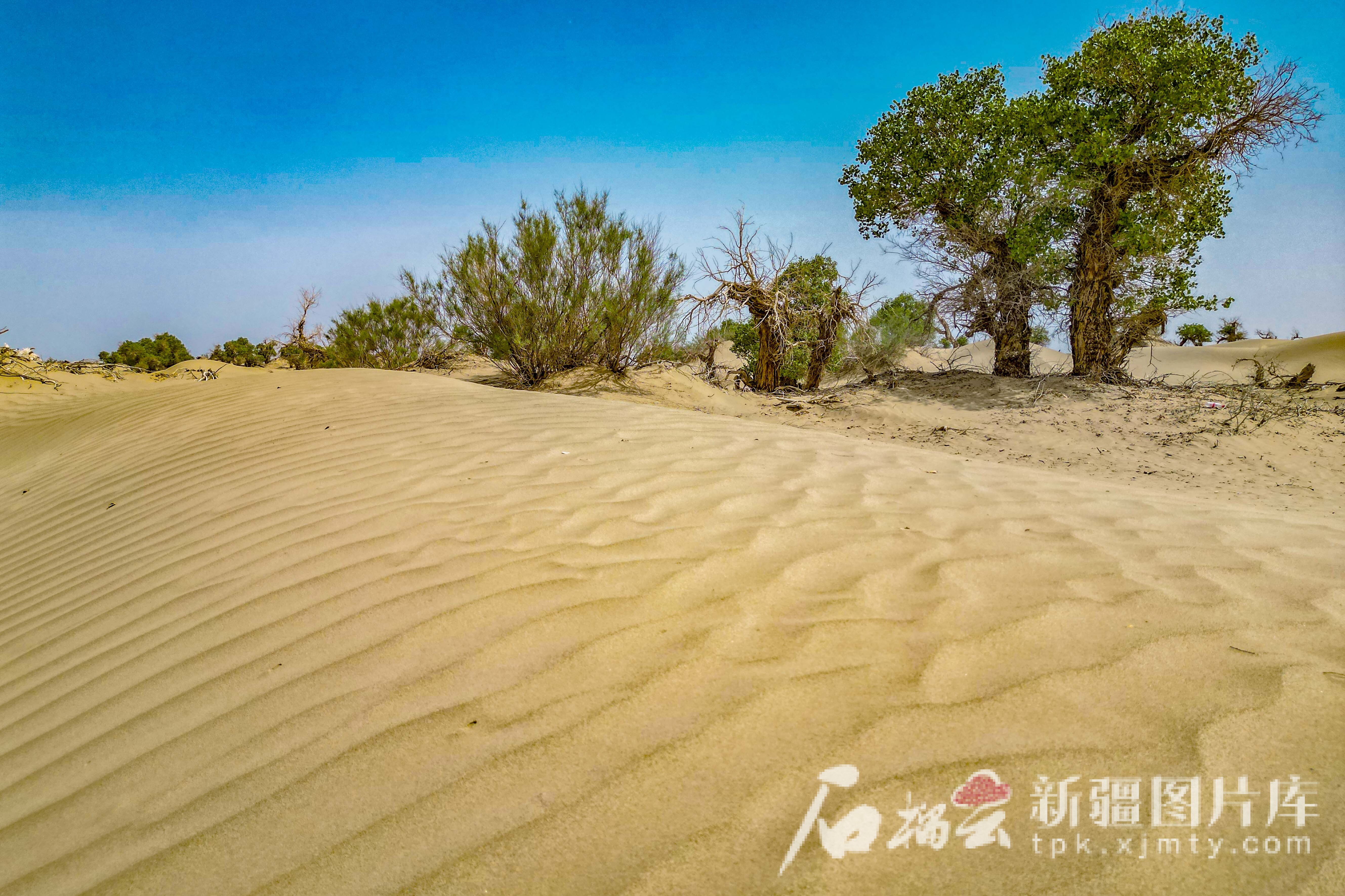 5月27日在阿瓦提县拍摄的沙漠胡杨景观。