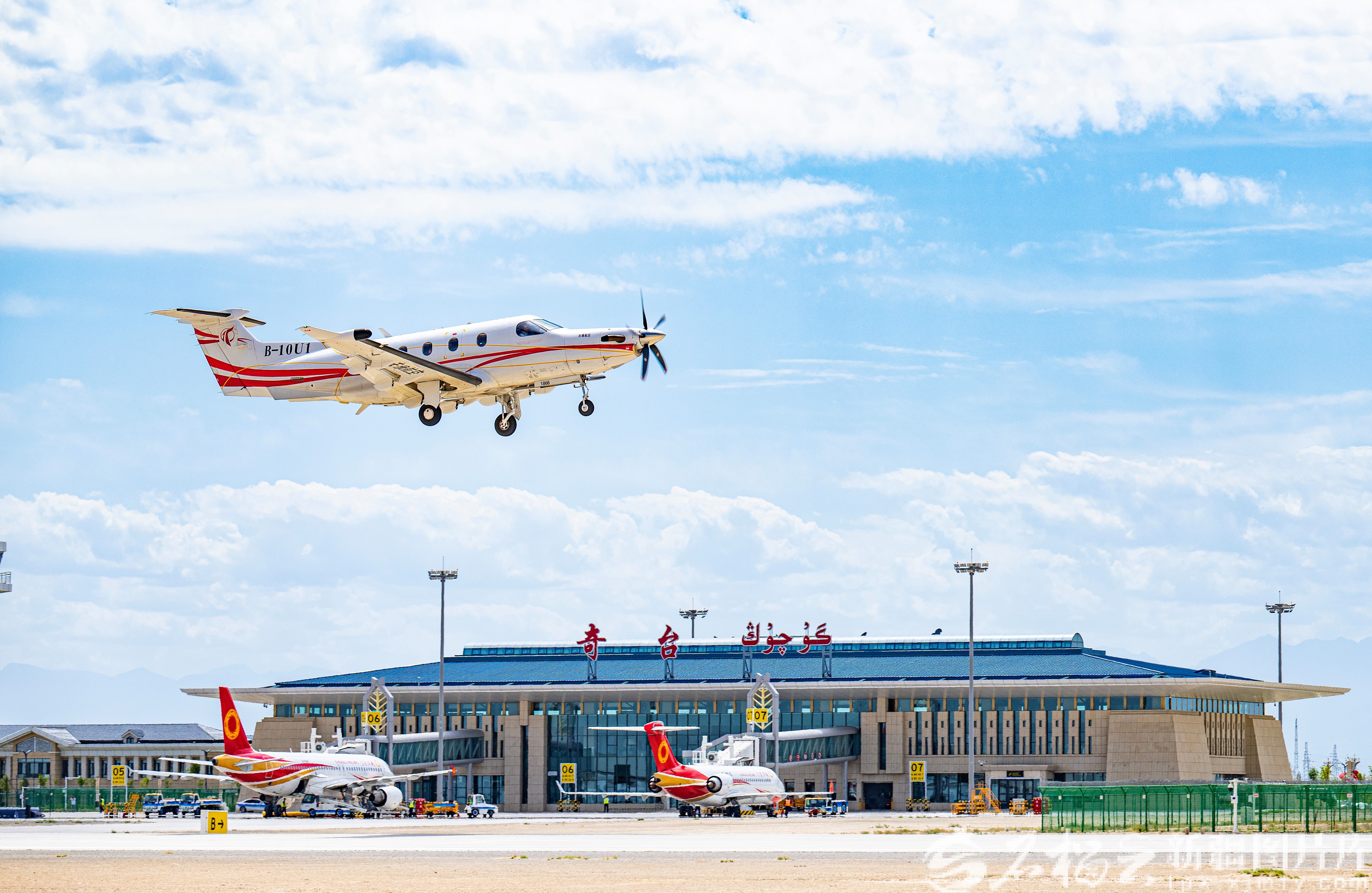 8月8日,奇台江布拉克机场,飞往新疆和田的航班正在起飞。何龙摄