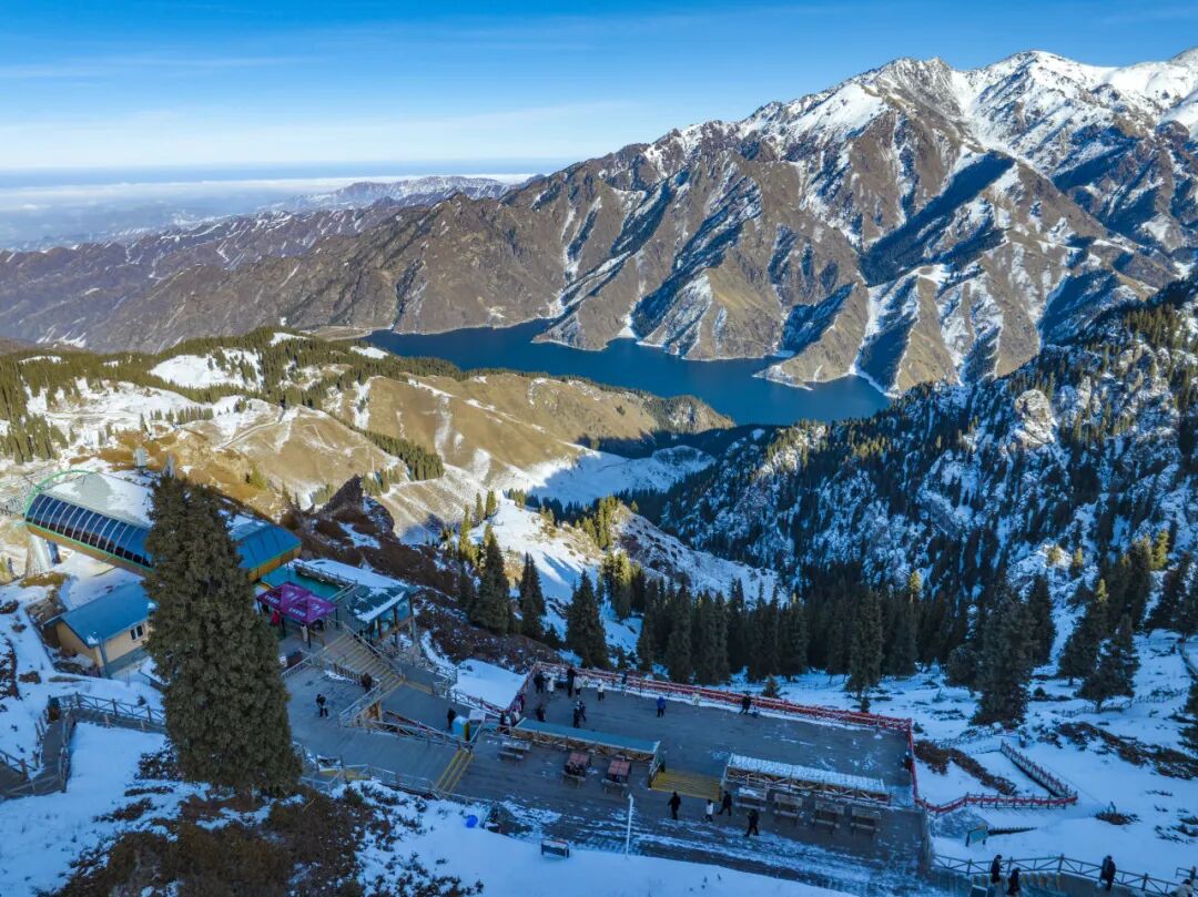 天山天池景区门票免费,冰上项目、天池滑雪场滑雪票、五江温泉城温泉体验券、飞览天下“飞越十项畅玩票”、太空舱营地住宿等全线8折。