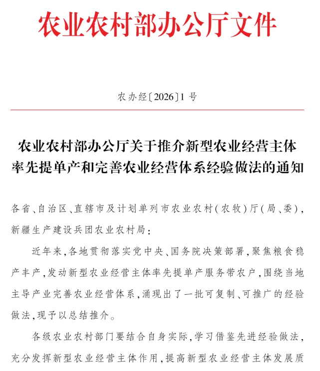 A+ A. A- 近日,农业农村部办公厅下发关于推介新型农业经营主体率先提单产和完善农业经营体系经验做法的通知,昌吉州三个经验做法被推介。