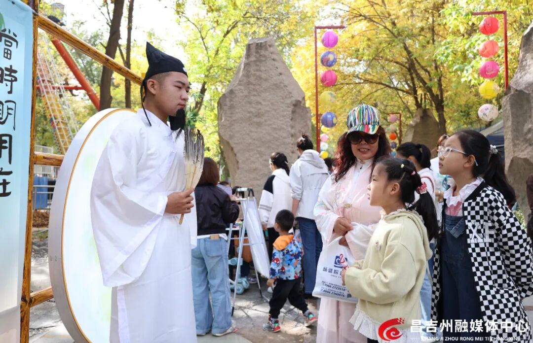 10月1日,昌吉市人民公园,小朋友参与对诗。记者付小芳 摄