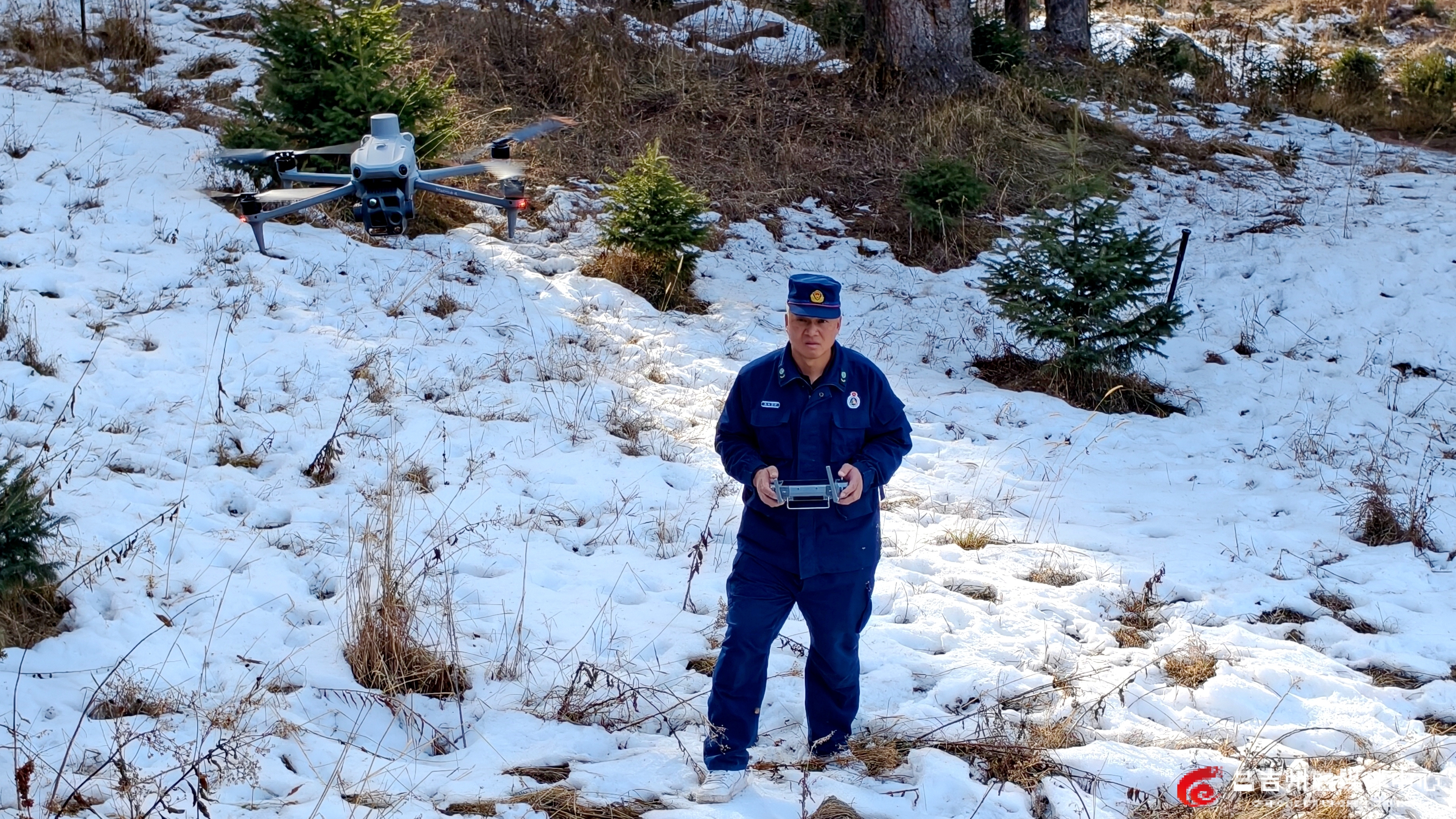 11月10日,阜康国有林管理局海北管护站站长李刚操控无人机巡林。记者王薇 摄