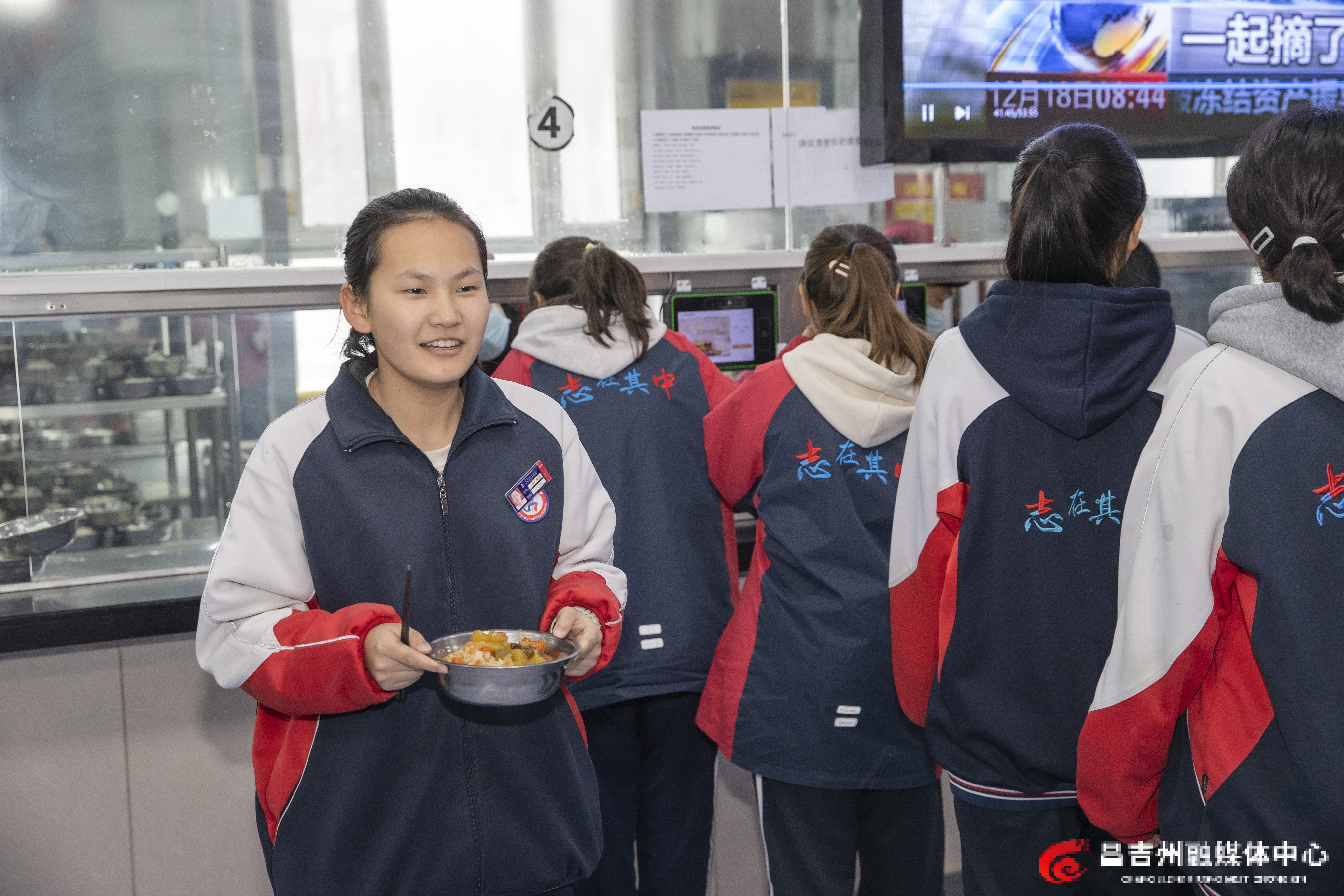 A+ A. A-丝路昌吉/昌吉州融媒体中心讯(记者 王硕报道)12月17日14时,昌吉市第九中学食堂里飘出阵阵饭香,李文静和同学排着整齐的队伍走向取餐口。玻璃橱窗内,打饭阿姨根据学生的喜好将饭菜装盘。食堂操作间里,厨师们身着统一工装忙碌着,洗菜池、切配区、烹饪区划分清晰,高清摄像头将每道工序实时传至大厅屏幕。