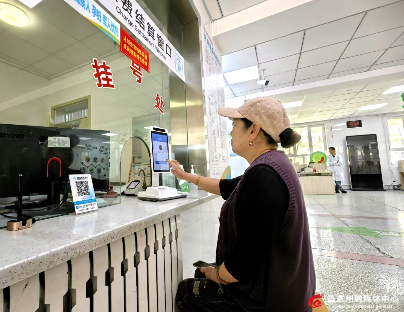 在昌吉州人民医院门诊大厅缴费窗口,患者使用医保“刷脸付”结算就医费用。资料图