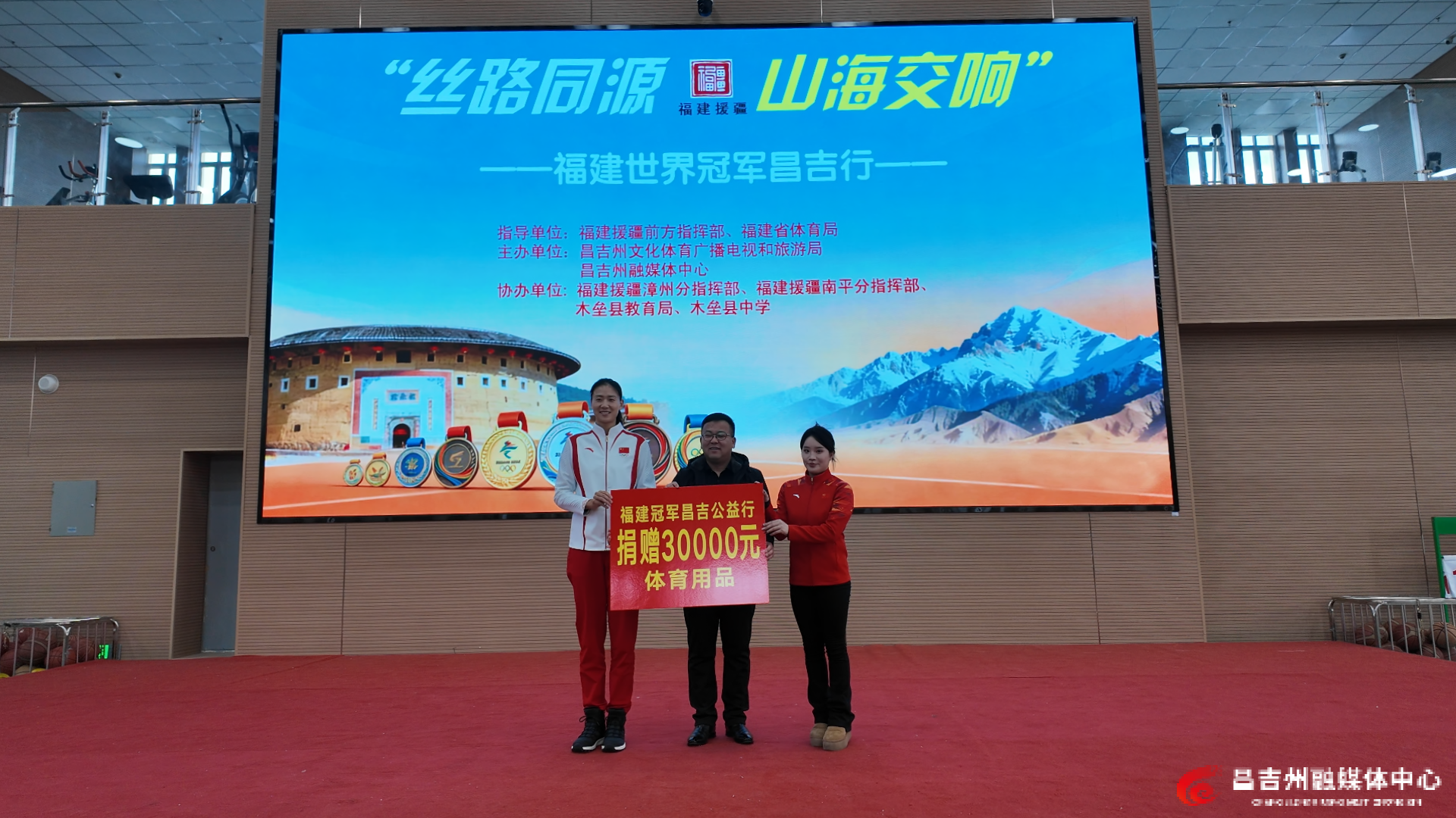 A+ A. A-丝路昌吉/昌吉州融媒体中心讯(记者 张佳煜报道)12月27日,“丝路同源·山海交响”福建世界冠军昌吉公益行活动在木垒县正式启动。来自福建的9位世界体育冠军走进木垒县中学,与师生面对面交流,通过故事分享、技能互动等形式,传递体育精神,播撒奋斗火种。