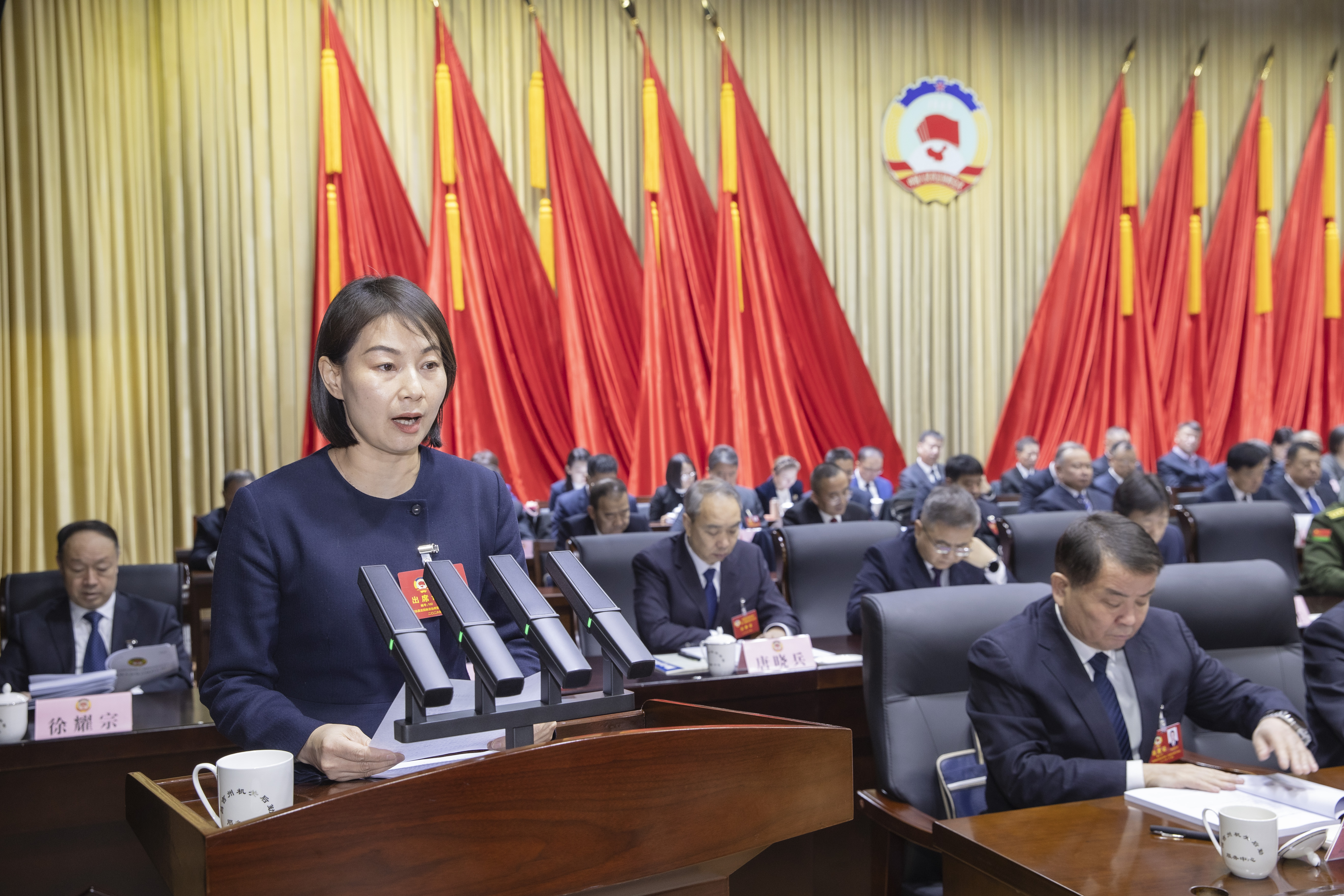 1月19日,昌吉州政协十三届五次会议举行第二次全体会议。大会现场,州政协委员唐莉丽作大会发言。记者巨海成 摄
