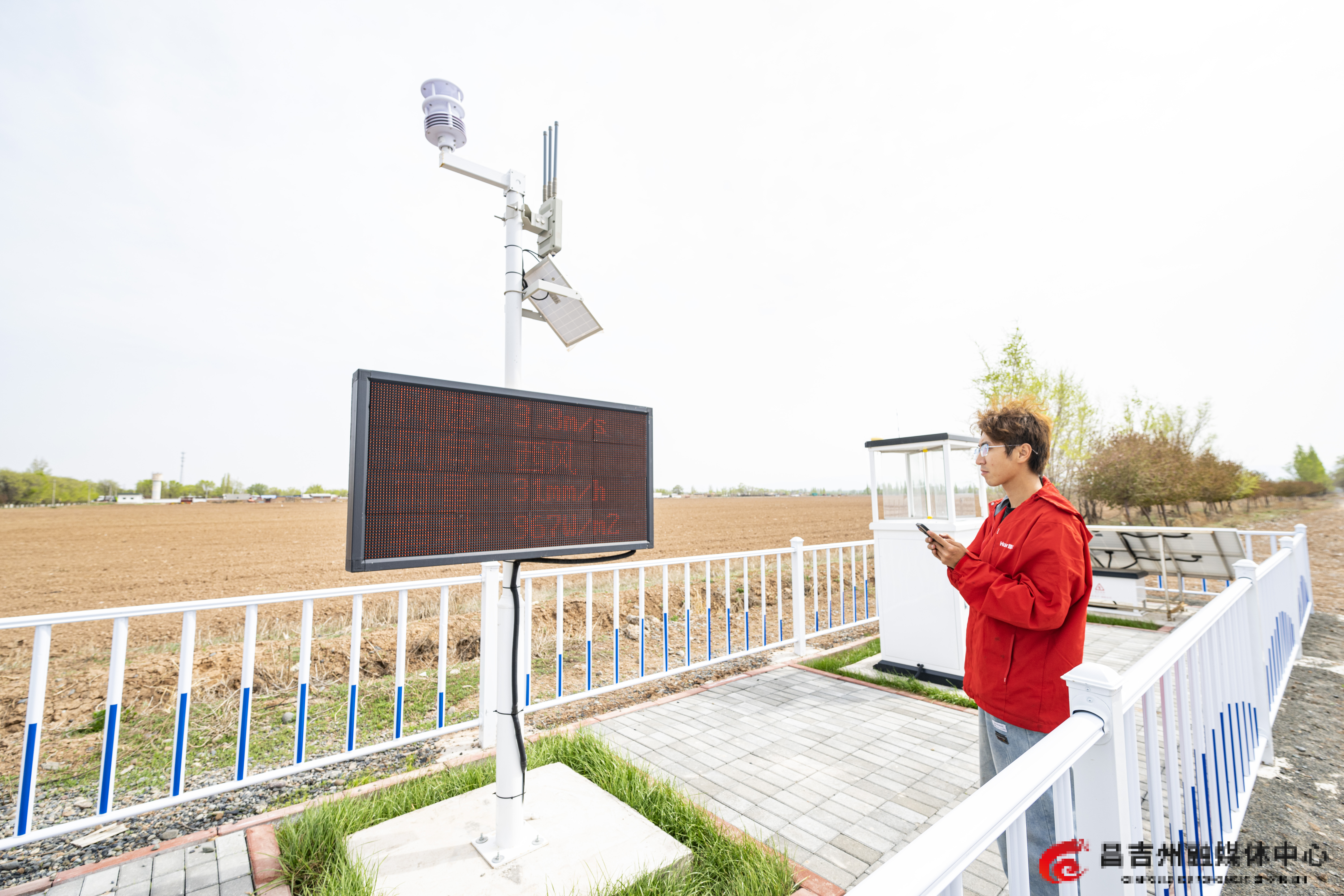 昌吉国家农高区智慧农场,新疆慧尔智联技术有限公司技术人员在调试气象监测设备。资料图