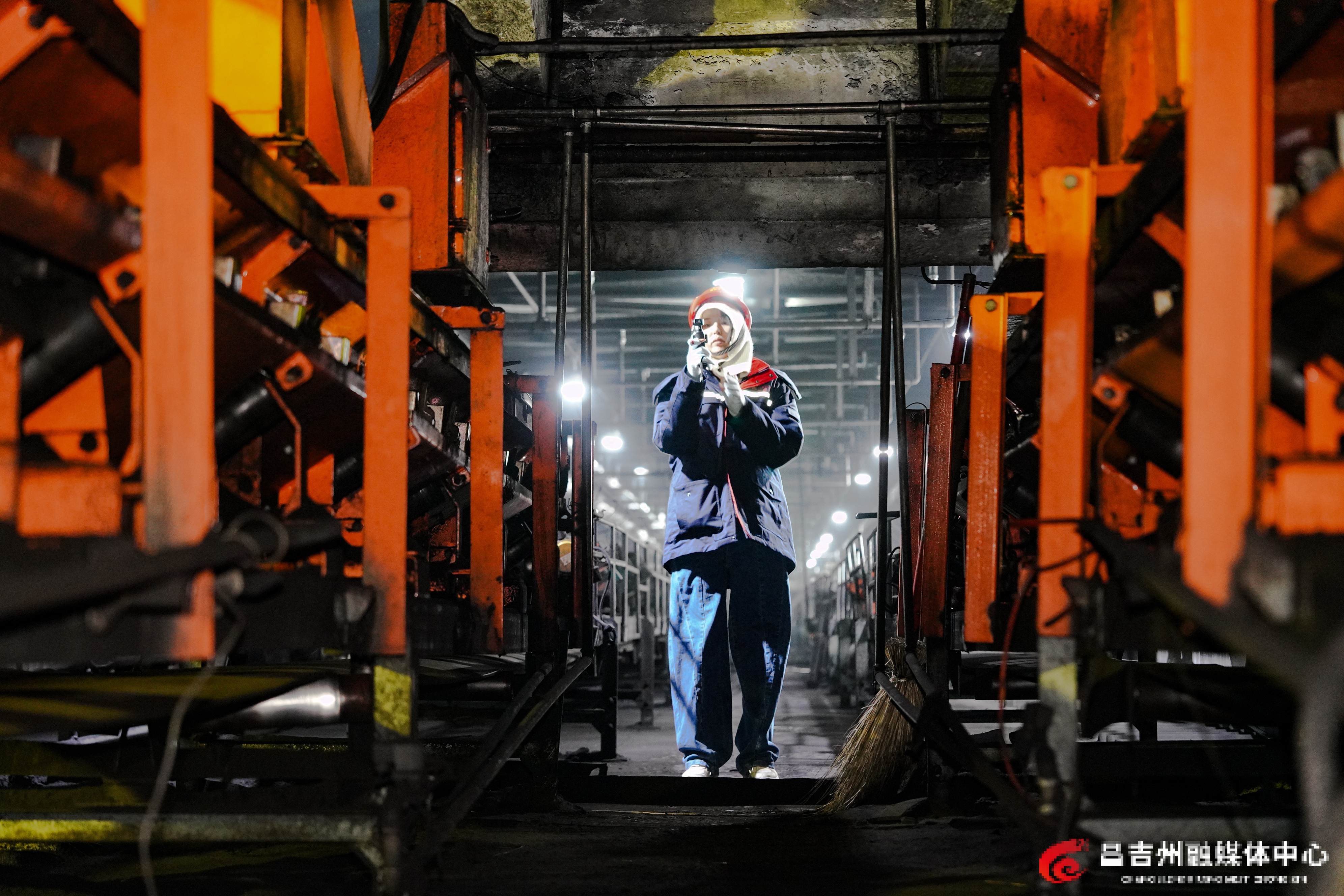 1月13日,新疆国泰新华化工有限责任公司,参与昌吉州融媒体中心2026年新春走基层活动的记者在输煤栈桥内拍摄。记者常谊谊 摄