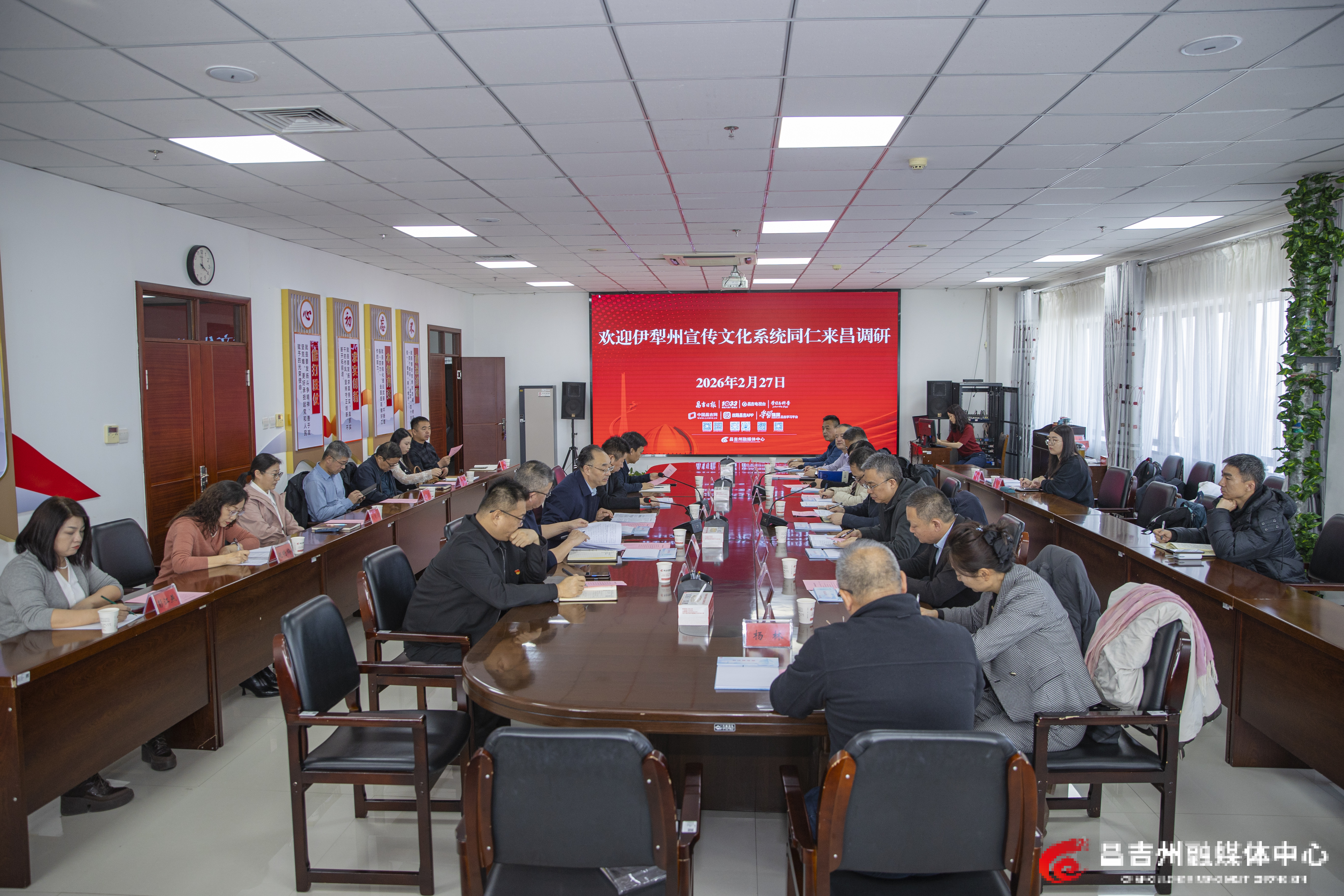 A+ A. A-丝路昌吉/昌吉州融媒体中心讯(记者 巨海成报道)2月27日,伊犁州党委宣传部、伊犁融媒体中心、伊犁人民出版社等单位组成考察团,在昌吉州融媒体中心开展参观交流活动。双方围绕媒体深度融合、内容创新、技术赋能等核心议题,通过实地观摩、座谈研讨等形式,深入探讨新时代融媒体高质量发展路径。