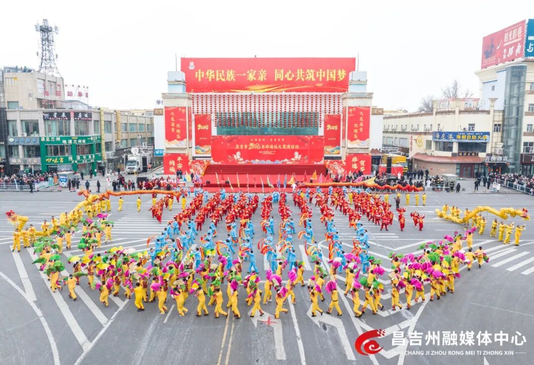 当日上午,昌吉市2026年非遗社火展演活动在原吉瑞祥影剧院前拉开帷幕。李长江、苏晓莉,昌吉州人大常委会、政府、政协有关领导,部分优秀共产党员代表、人大代表、政协委员,劳动模范、“三八红旗手”、道德模范、民族团结进步模范代表,公安、消防、企业等各行各业优秀代表以及州府各族群众一同观看社火展演。