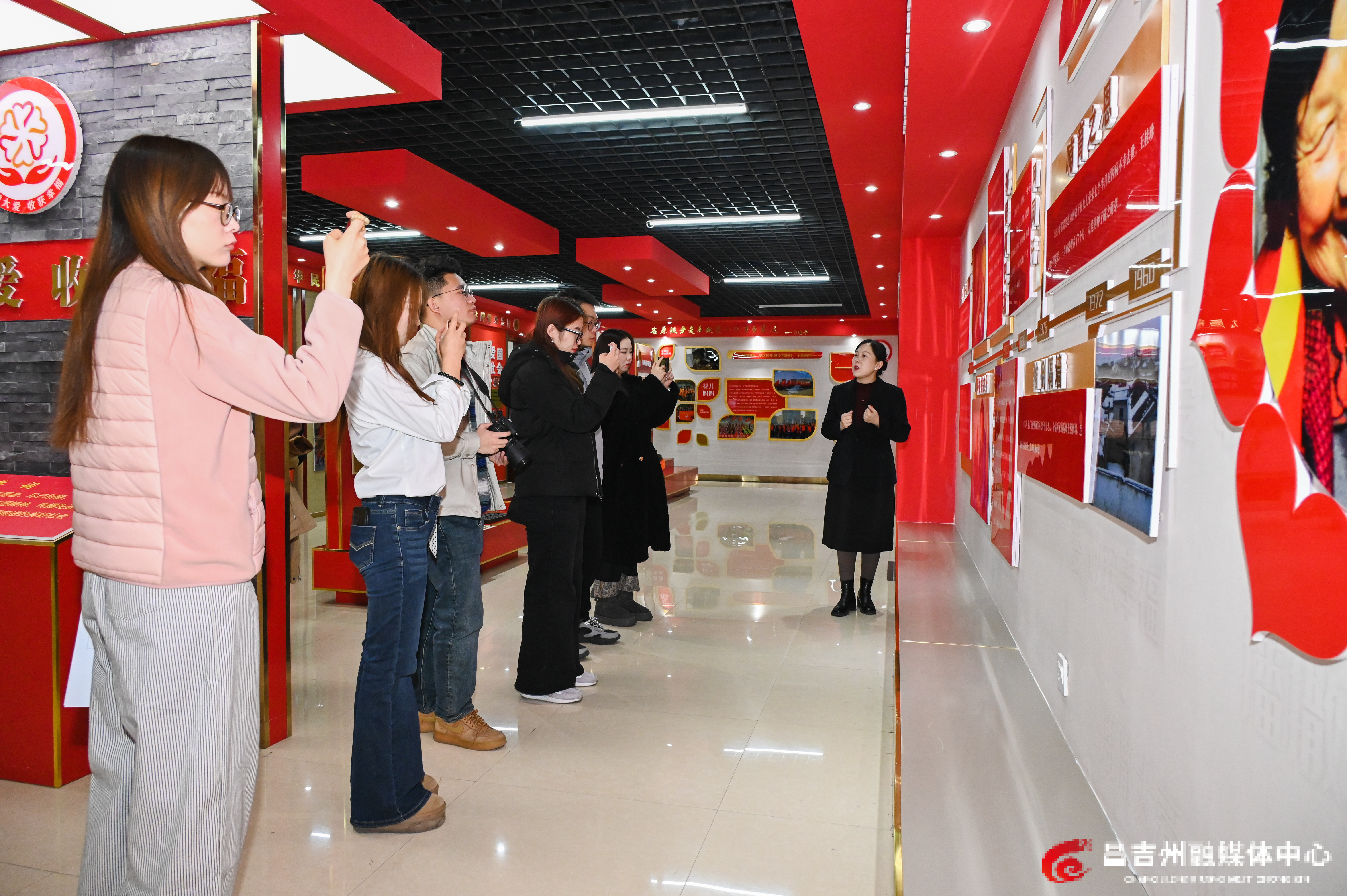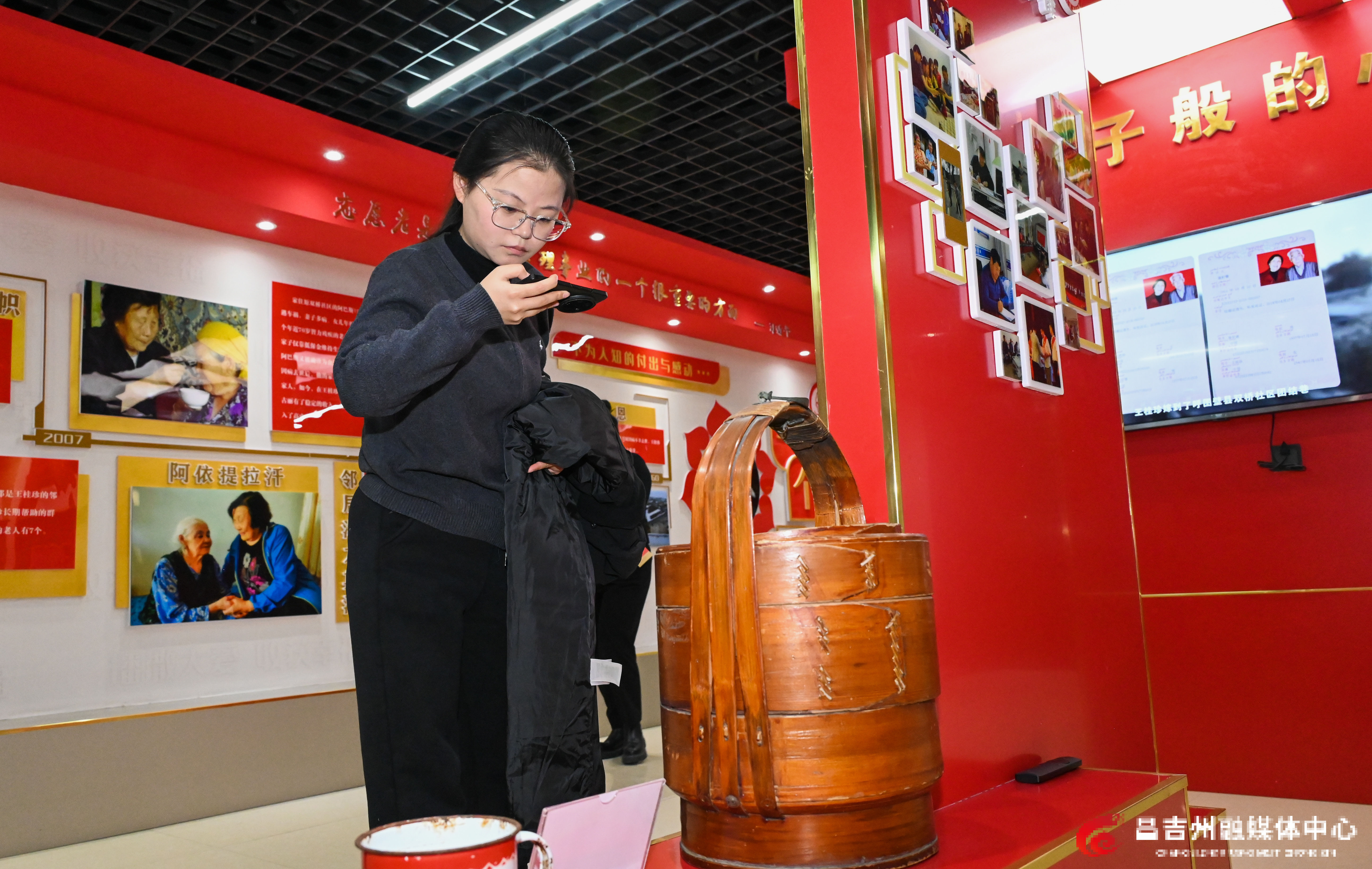 3月4日,“这里是昌吉·昌吉因你更美”主题采访团媒体记者在呼图壁县阿同汗社区“阿同汗”志愿服务史馆参观采访。