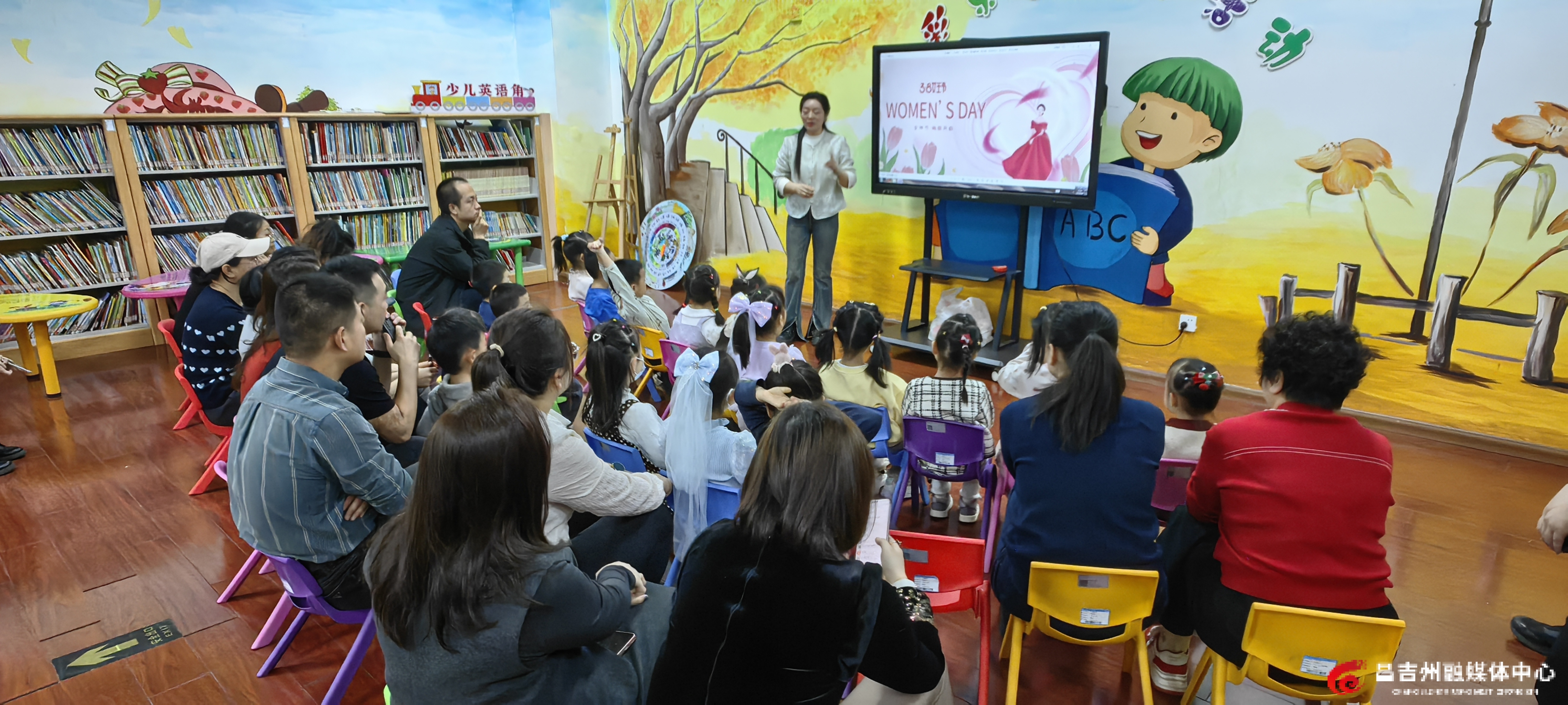 亲子阅读分享活动现场,家长与孩子们共同品读经典绘本《花婆婆》,了解这位用坚持与善意让世界变得更美好的女性形象。孩子们或举手提问,或踊跃分享心得,妈妈们则温柔陪伴在侧,轻声鼓励孩子大胆表达,书香氤氲与暖暖亲情交融,为节日增添了更多温馨记忆。