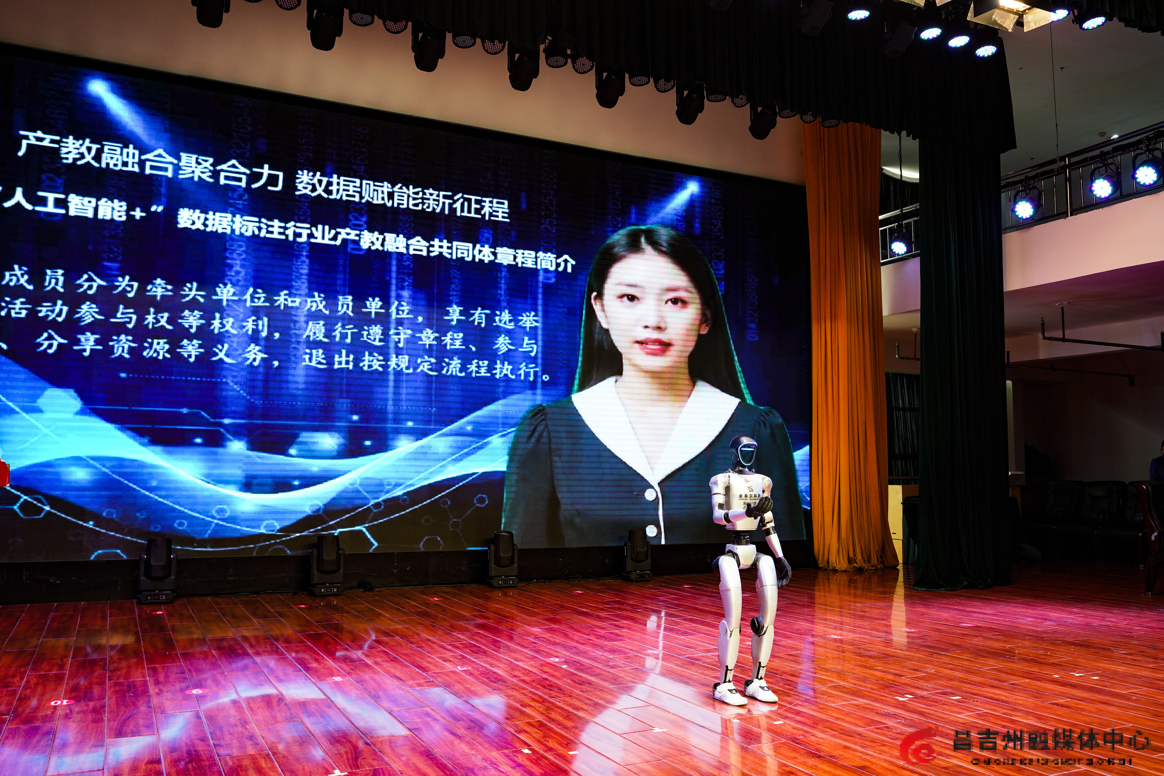 3月14日,AI数字人在新疆“人工智能+”数据标注行业产教融合共同体成立大会上发布该共同体章程。 记者常谊谊 摄