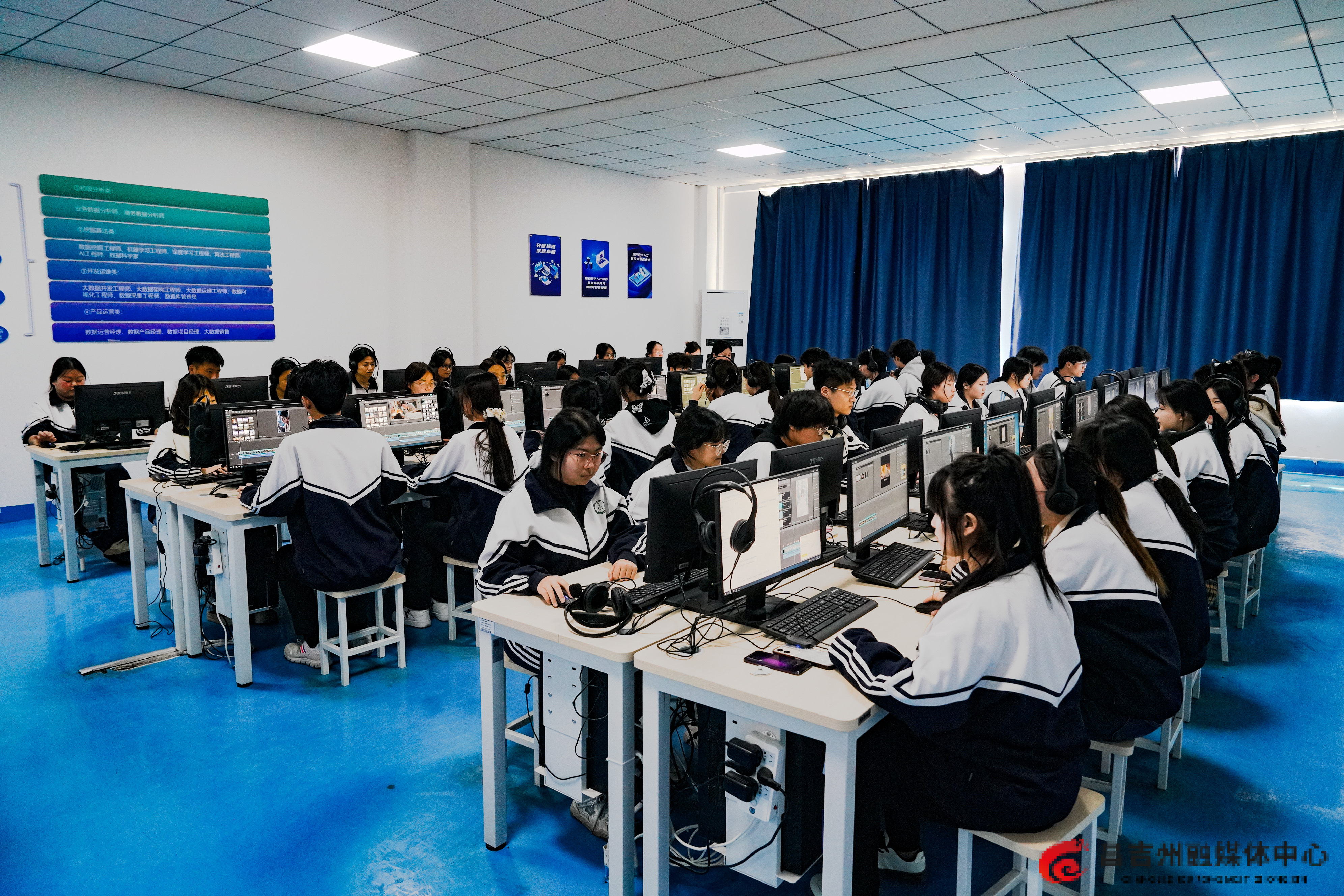 3月14日,昌吉职业技术学院的派格数据标注产业学院多媒体与数字教室,学生正在操作电脑运用AI应用软件。记者常谊谊 摄