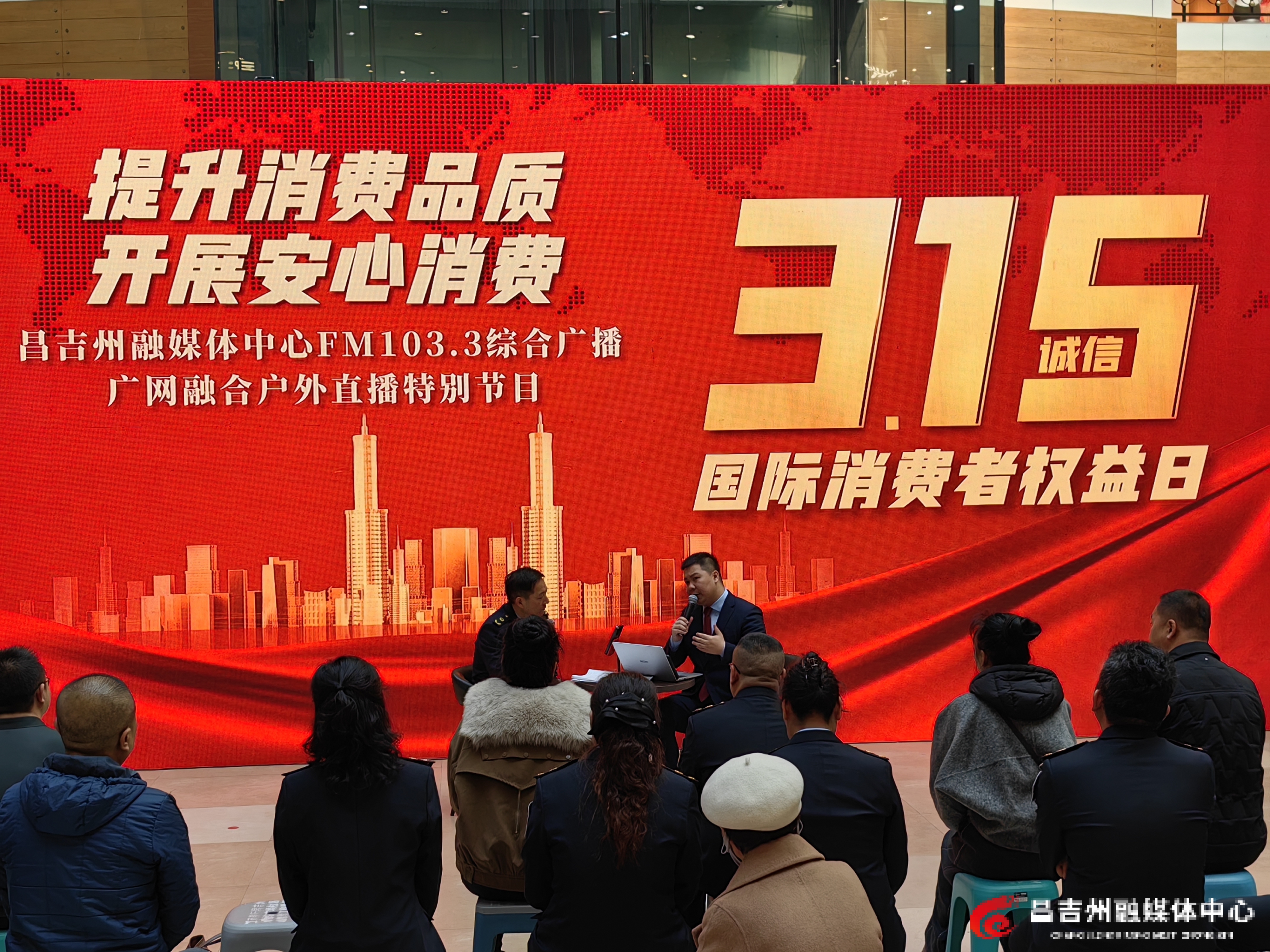 丝路昌吉/昌吉州融媒体中心讯(记者 荷苒·马汗报道)今年3月15日是第44个国际消费者权益日。当天上午,昌吉市“提升消费品质,开展安心消费”主题活动在东方广场举办,昌吉州融媒体中心FM103.3综合广播现场同步开展广网融合户外直播特别节目,邀请相关单位负责人现场接线受理消费者投诉,通过线下活动与线上维权联动,为昌吉市民打造全方位消费维权服务平台。
