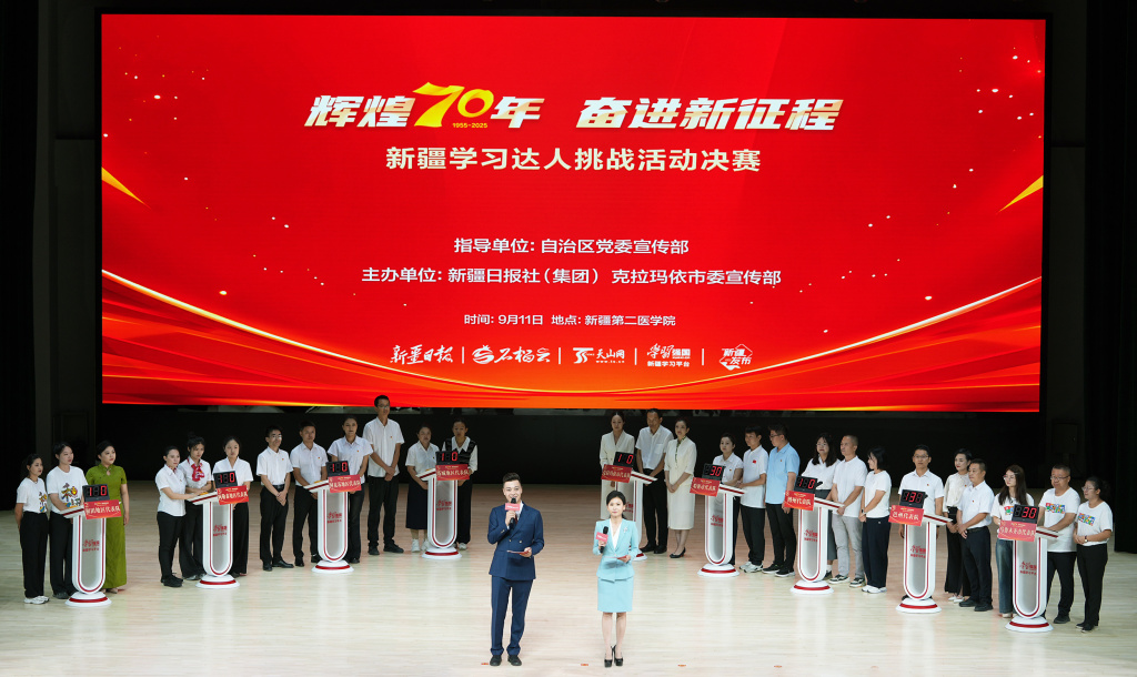 2025年9月11日,“辉煌70年 奋进新征程”新疆学习达人挑战活动决赛在克拉玛依市举行,来自各地州市的10支代表队展开较量。(摄影:闵勇)