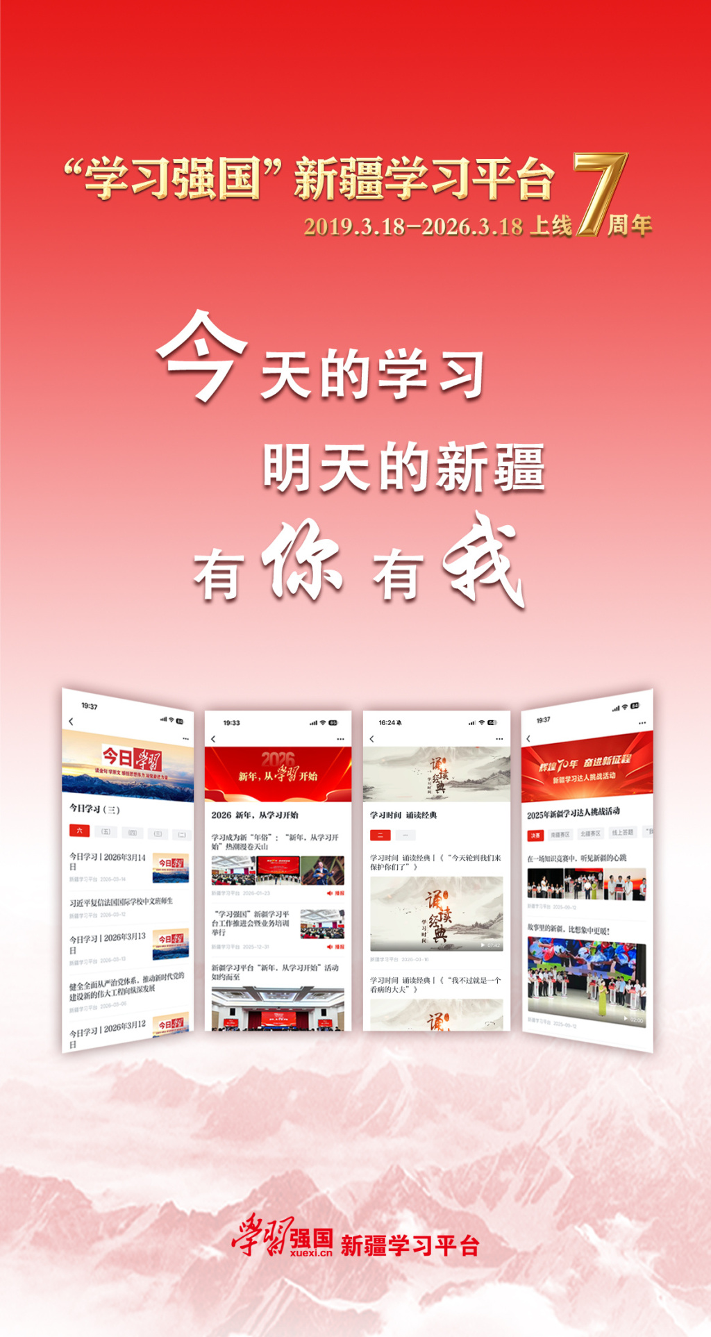 七年来,新疆学习平台始终把学习贯彻党的创新理论摆在首位。“习近平总书记与新疆各族人民心连心”“学习新思想”等专题专栏,在首屏首页置顶推荐。为了让党的创新理论“听得懂、记得住、用得上”,平台精心打磨《今日学习》《学习时间 诵读经典》等品牌栏目,把厚重的理论变成轻快的融媒体产品,让学习可听、可看、可参与。连续六年举办的“新年,从学习开始”系列活动,更是将学习的火种从线上播撒到线下——专家学者授课、优秀供稿员交流、青少年诵读经典、城市主题灯光秀……一场场活动,像一场场春雨,让思想的种子茁壮成长。