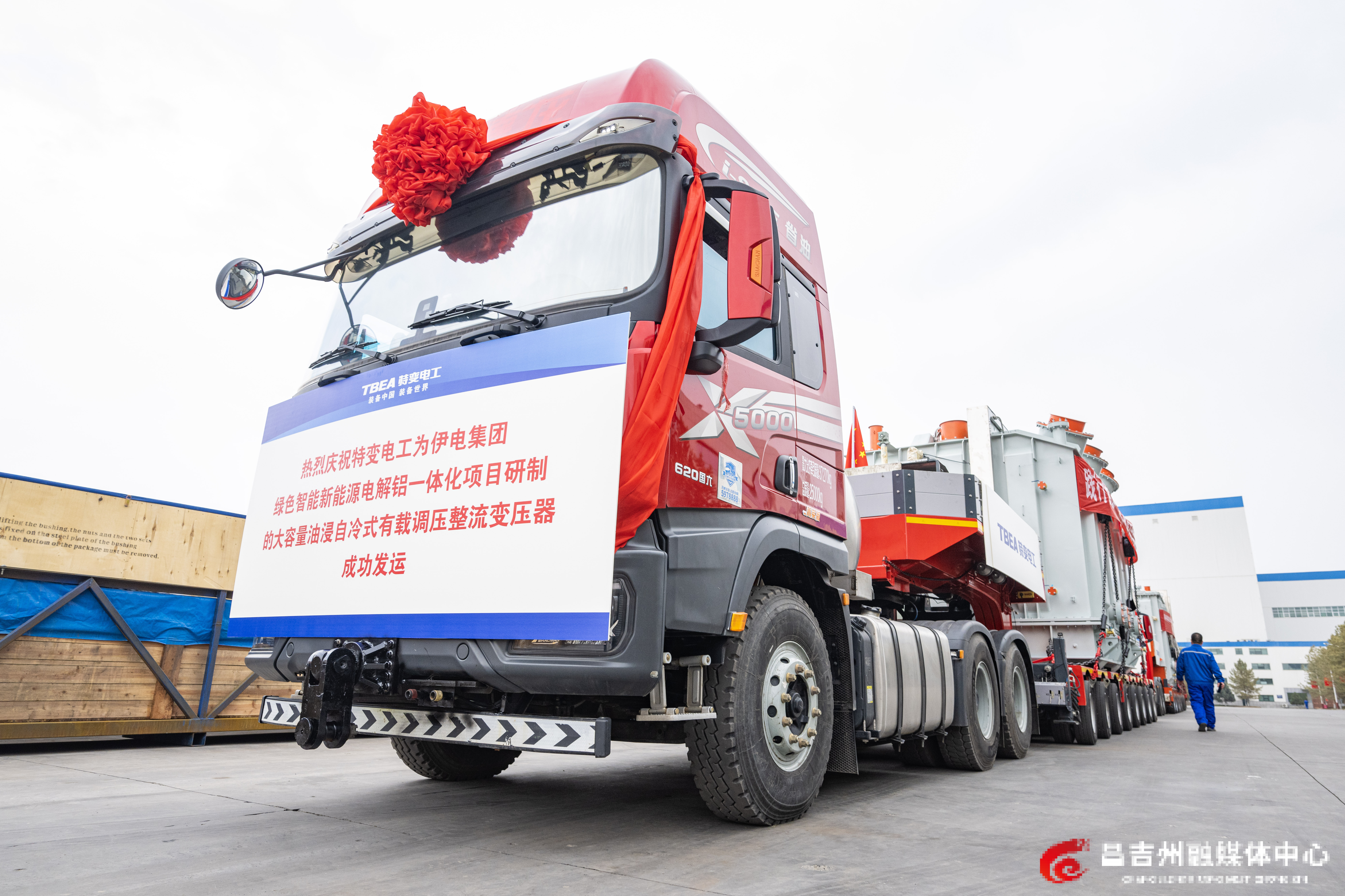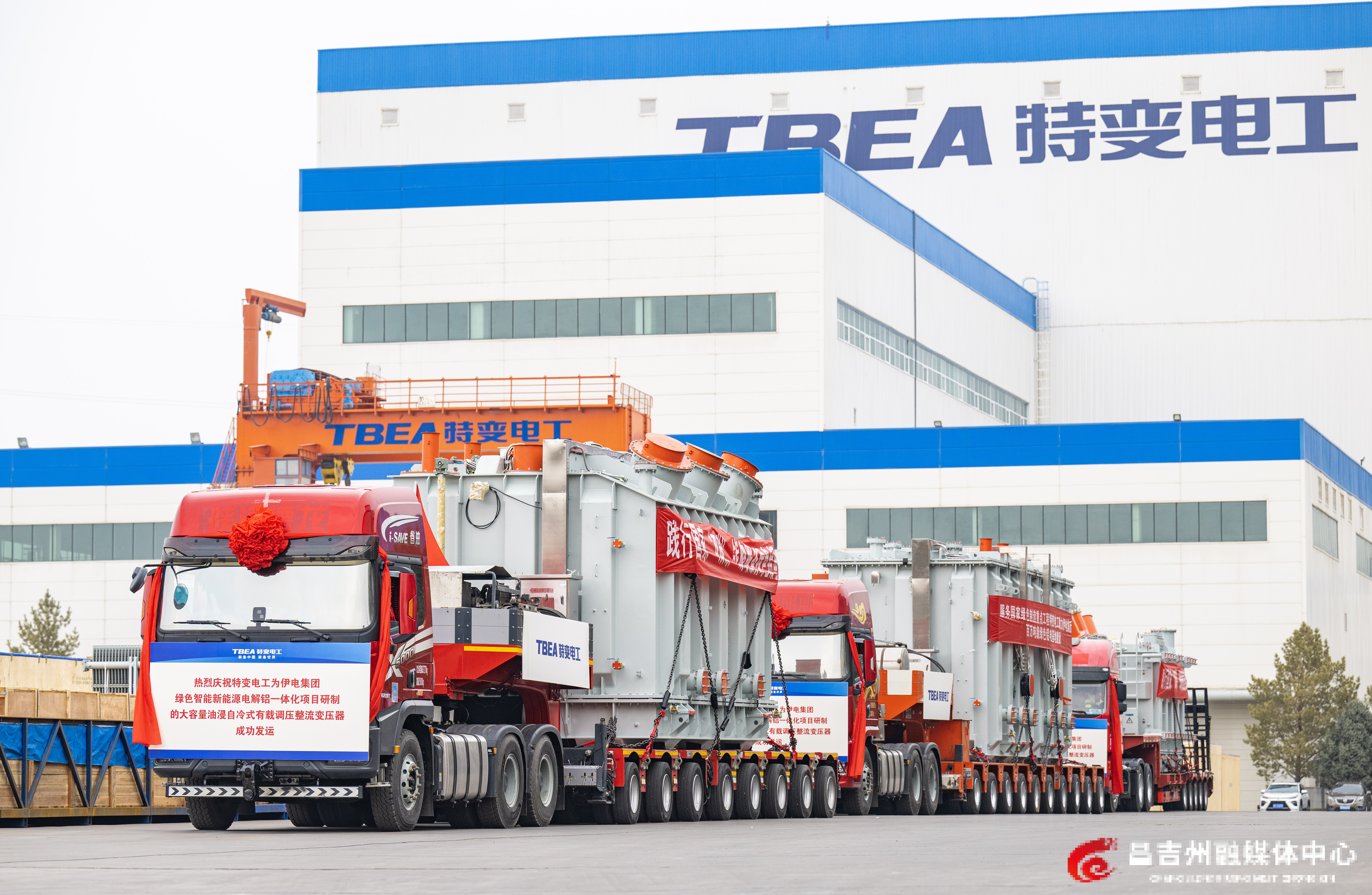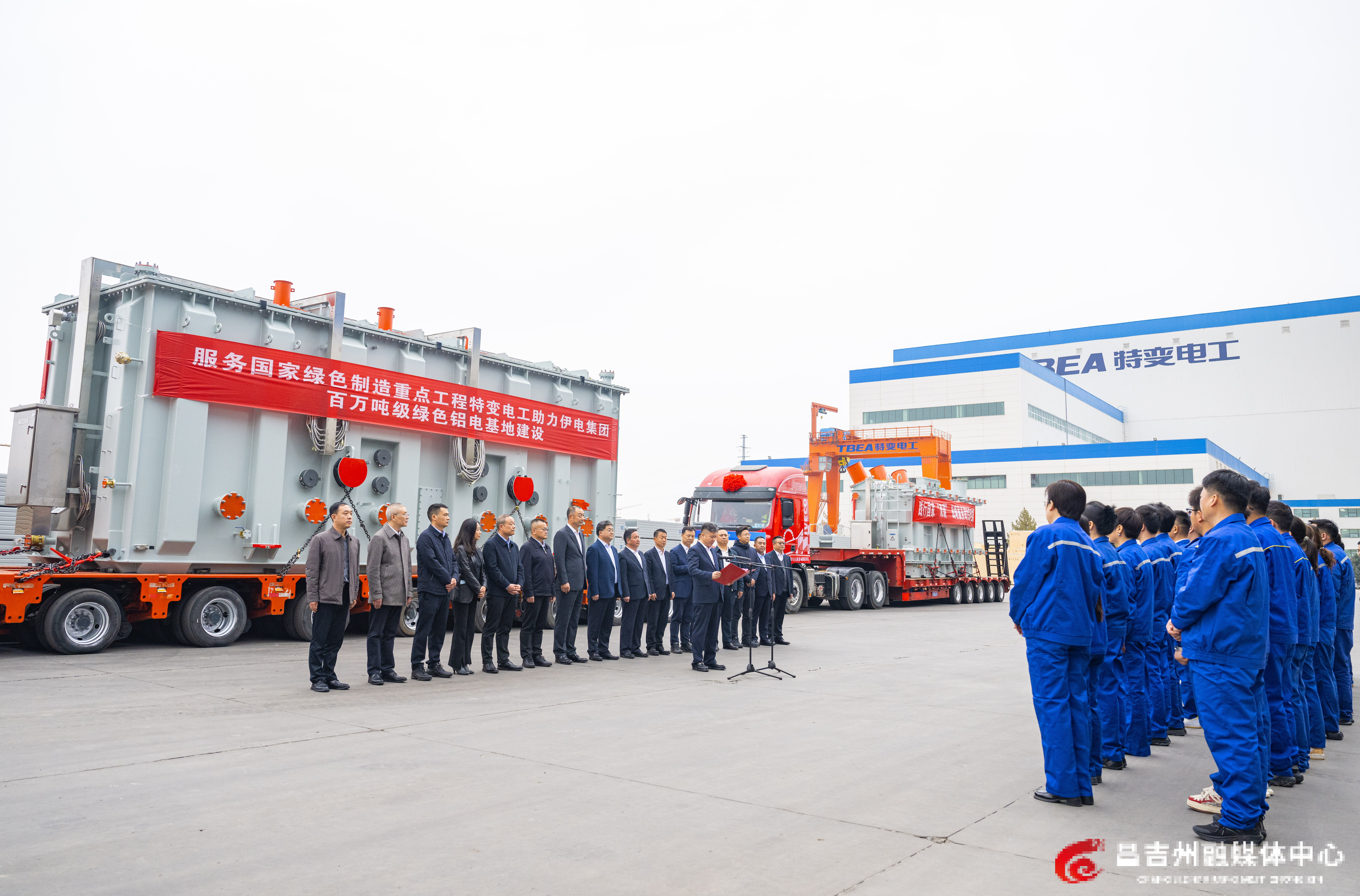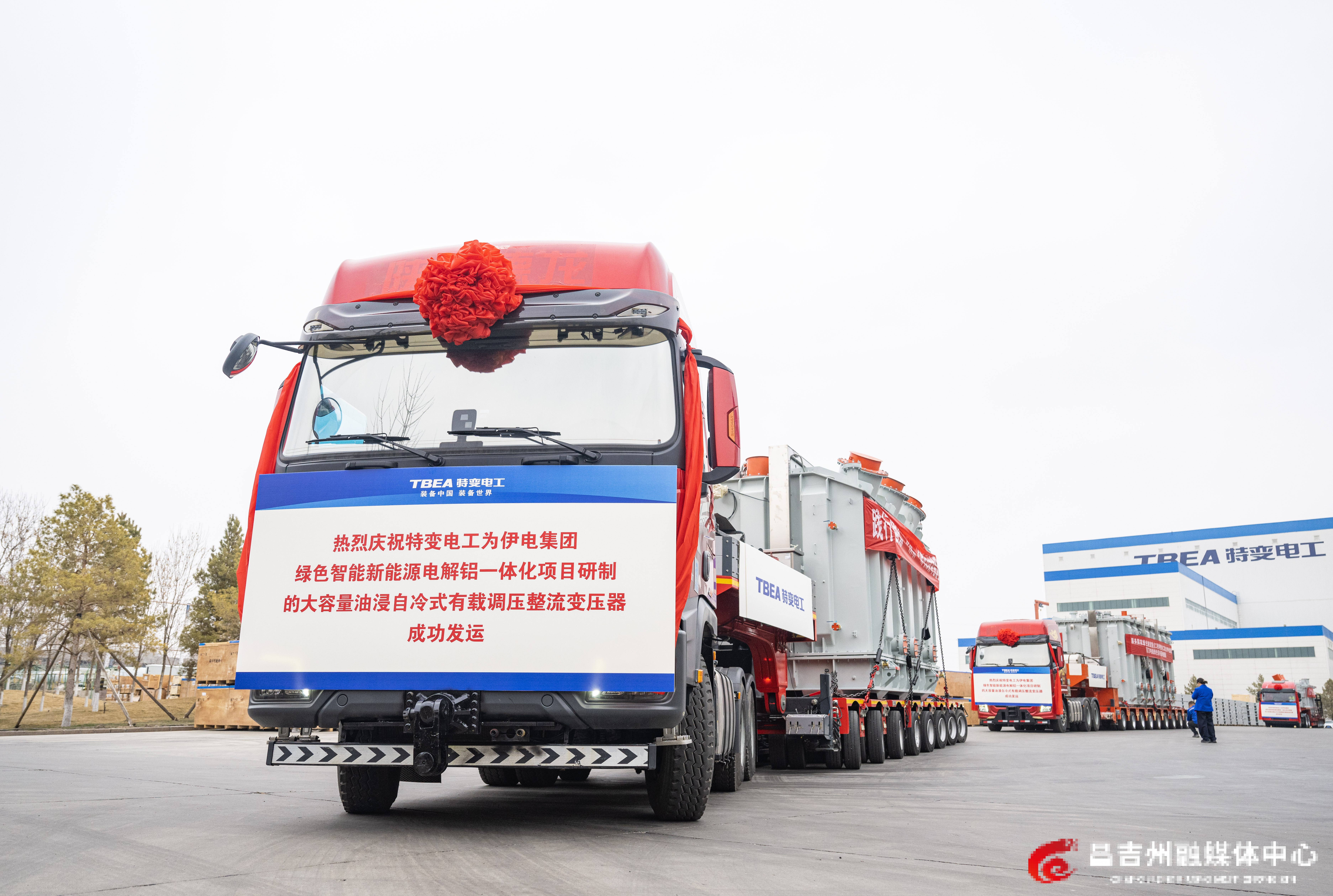 3月24日,特变电工新疆变压器厂,全疆容量最大的220千伏油浸自冷式有载调压整流变压器发运仪式现场。